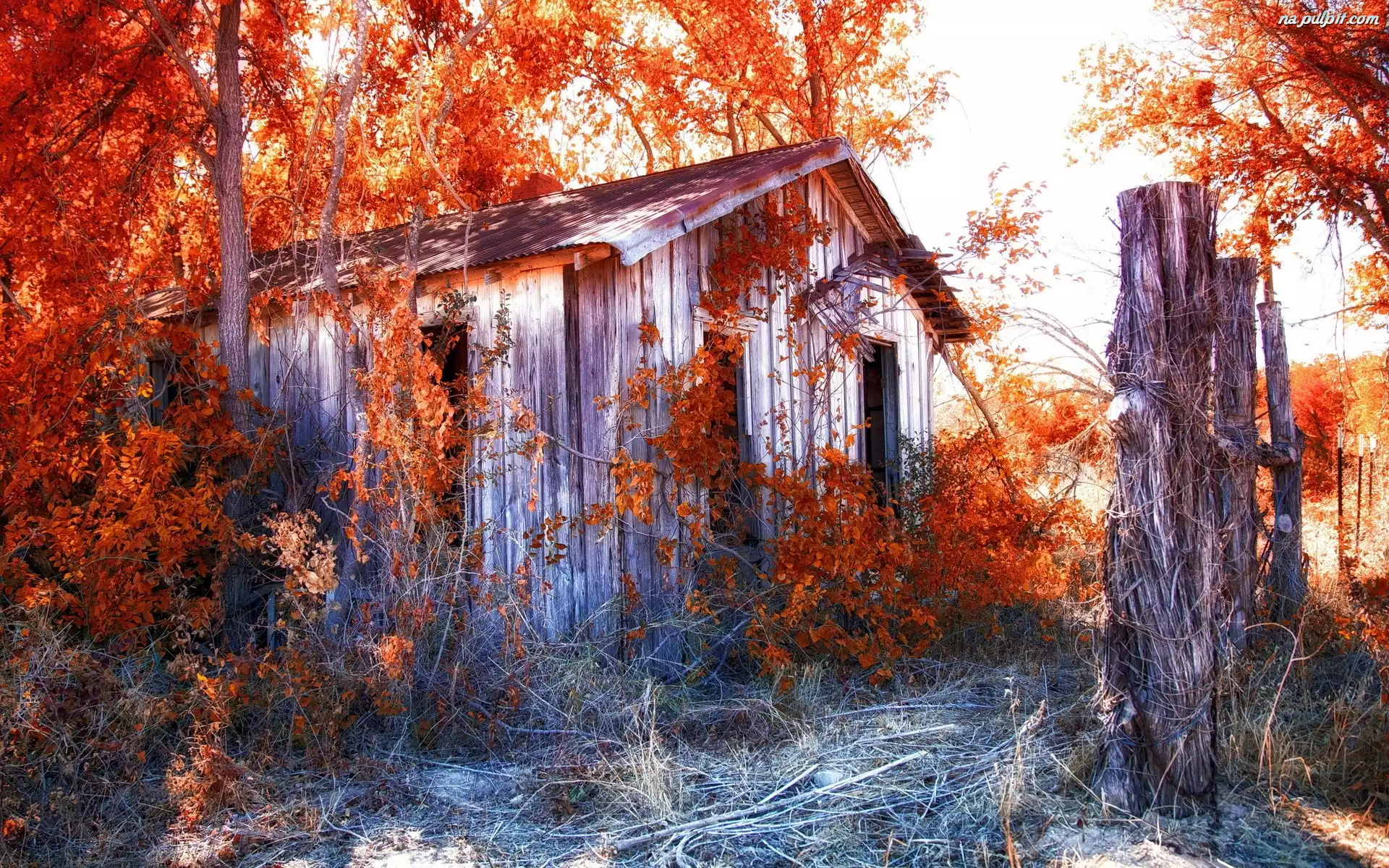 Jesień, Szopa, Drzewa Na Pulpit