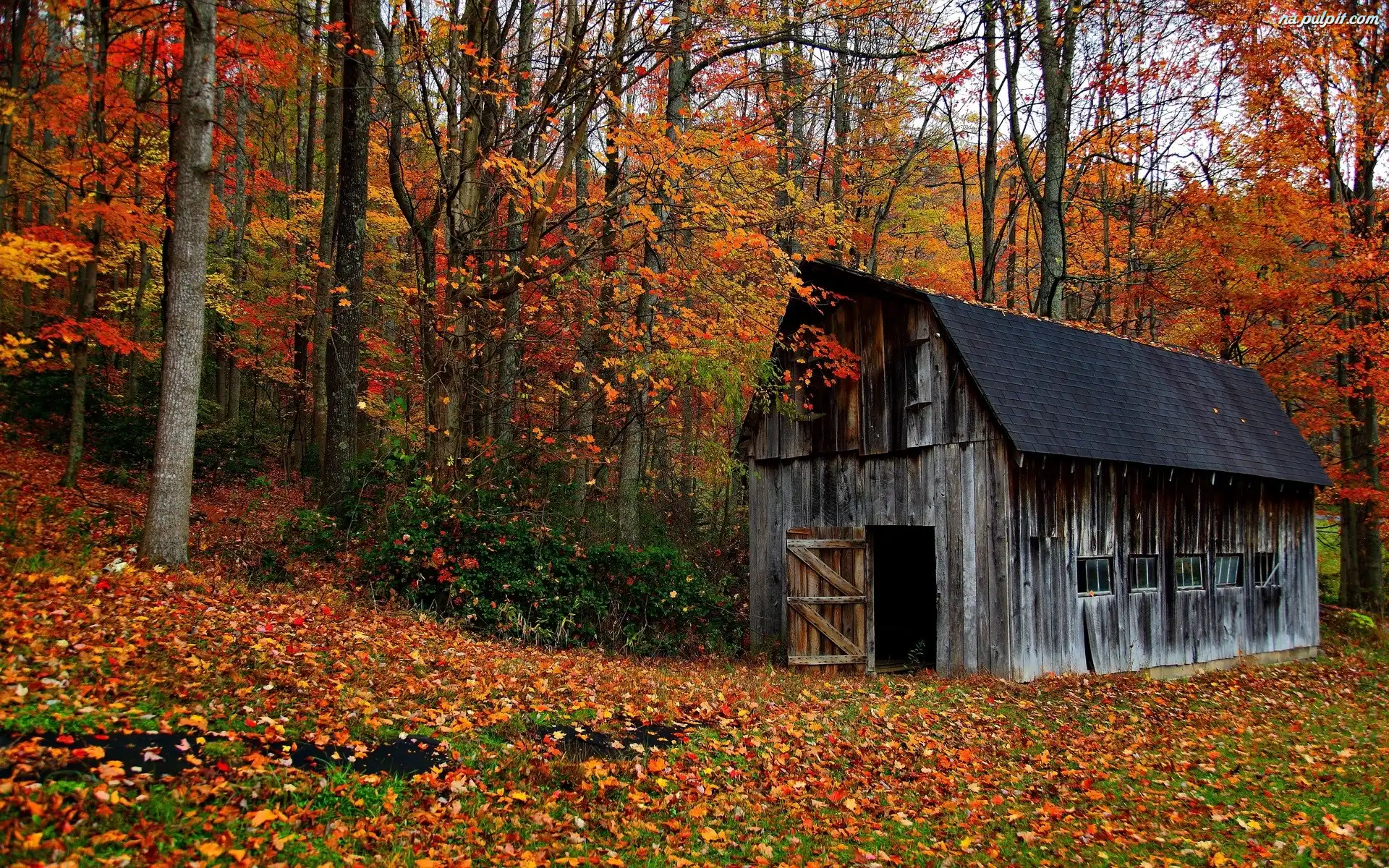 Szopa, Lasek, Jesień, Liście Na Pulpit