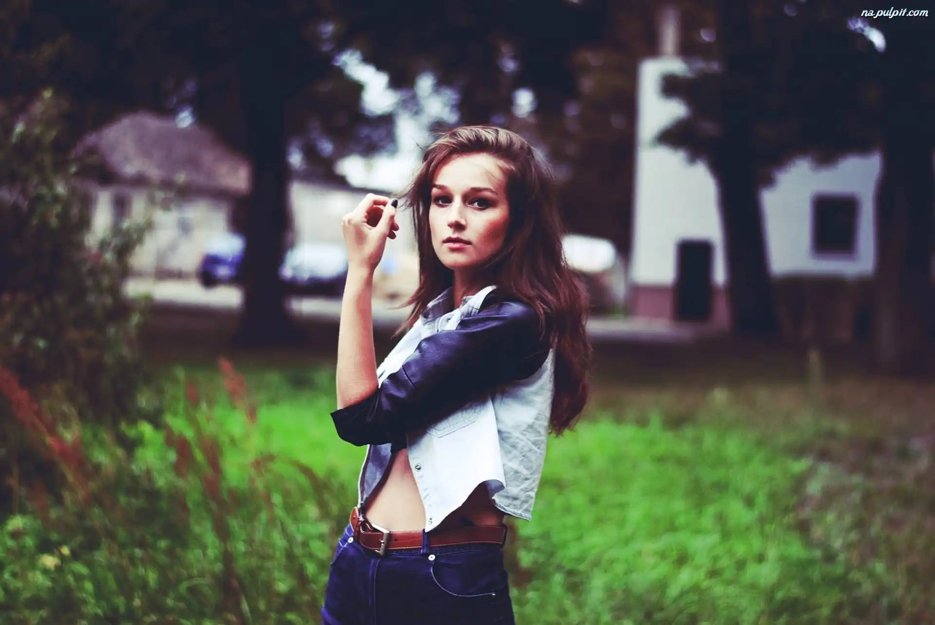Szorty, Brunetka, Kobieta, Bluzka Na Pulpit