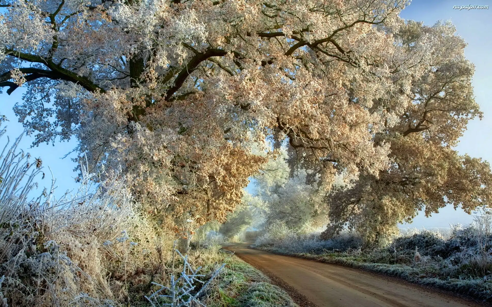 Szron, Liście, Zamarznięte, Drzewo, Droga Na Pulpit