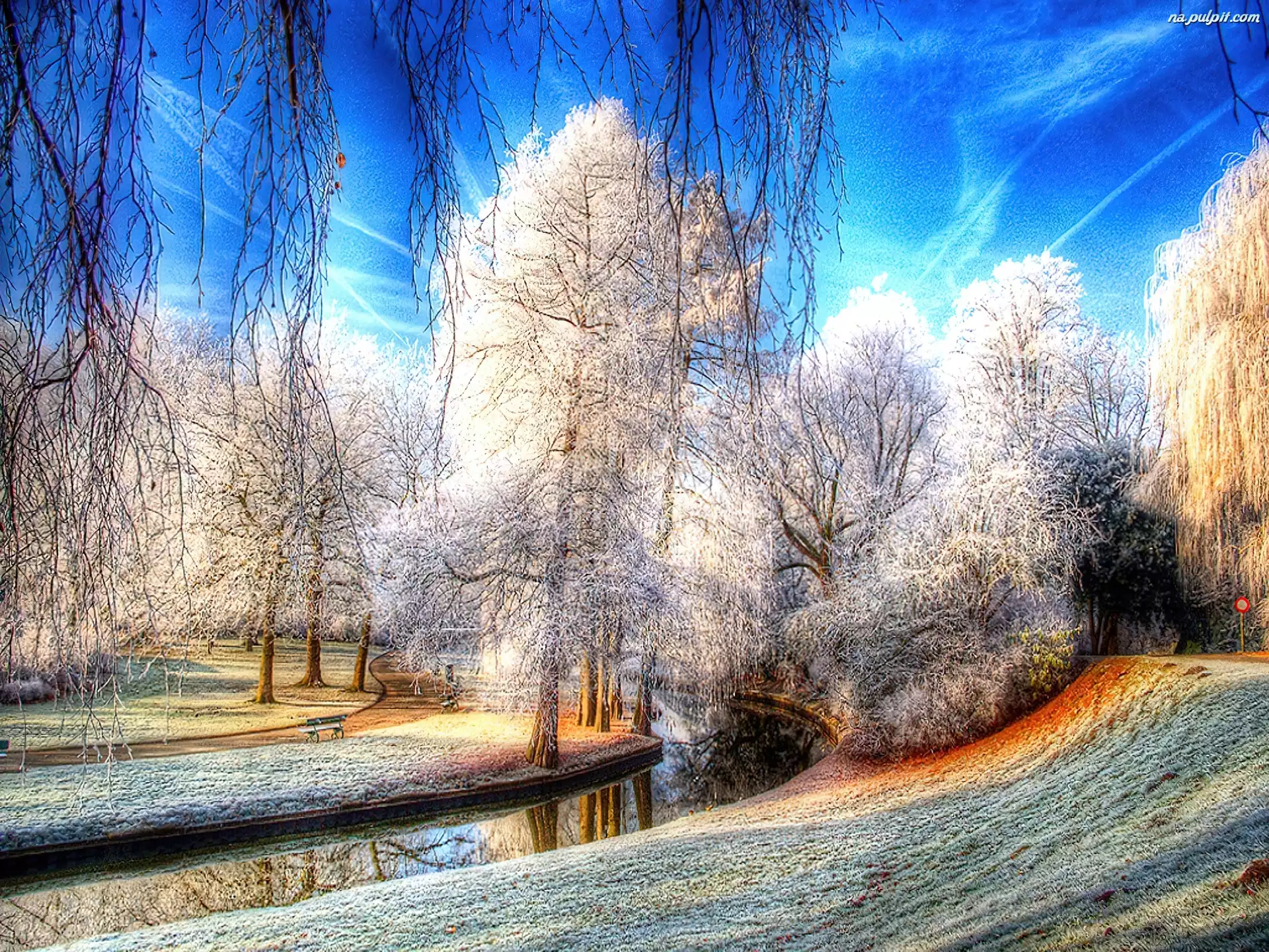 Szron, Drzewa, Park, Rzeczka Na Pulpit