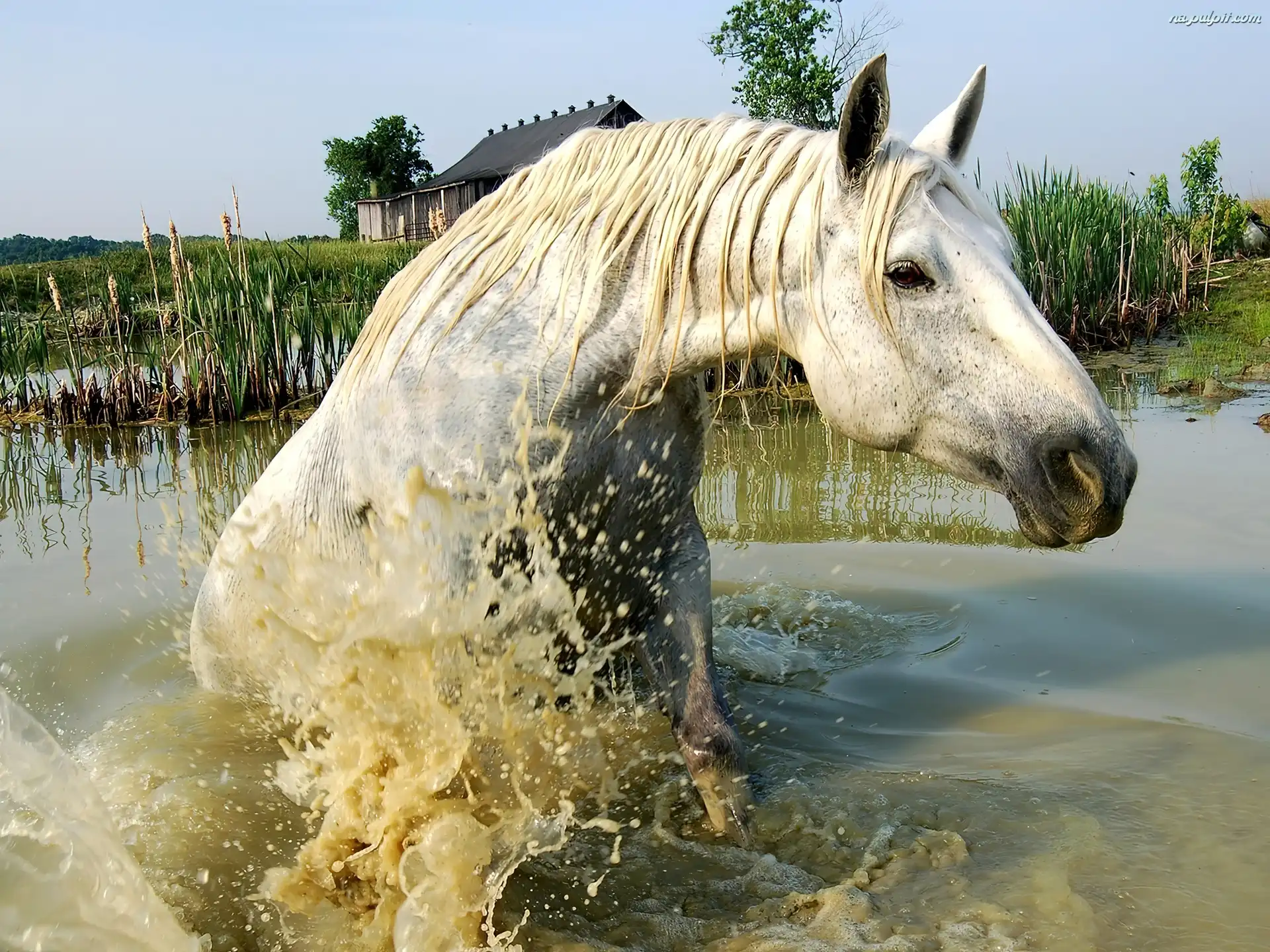 Szuwary, Koń, Biały, Woda Na Pulpit