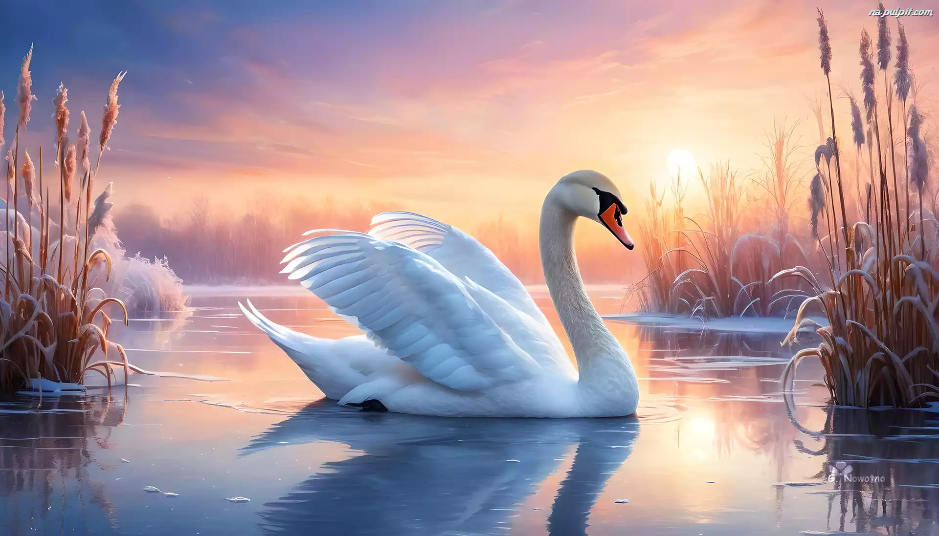 Łabędź, Ptak, Jezioro, Szuwary Na Pulpit