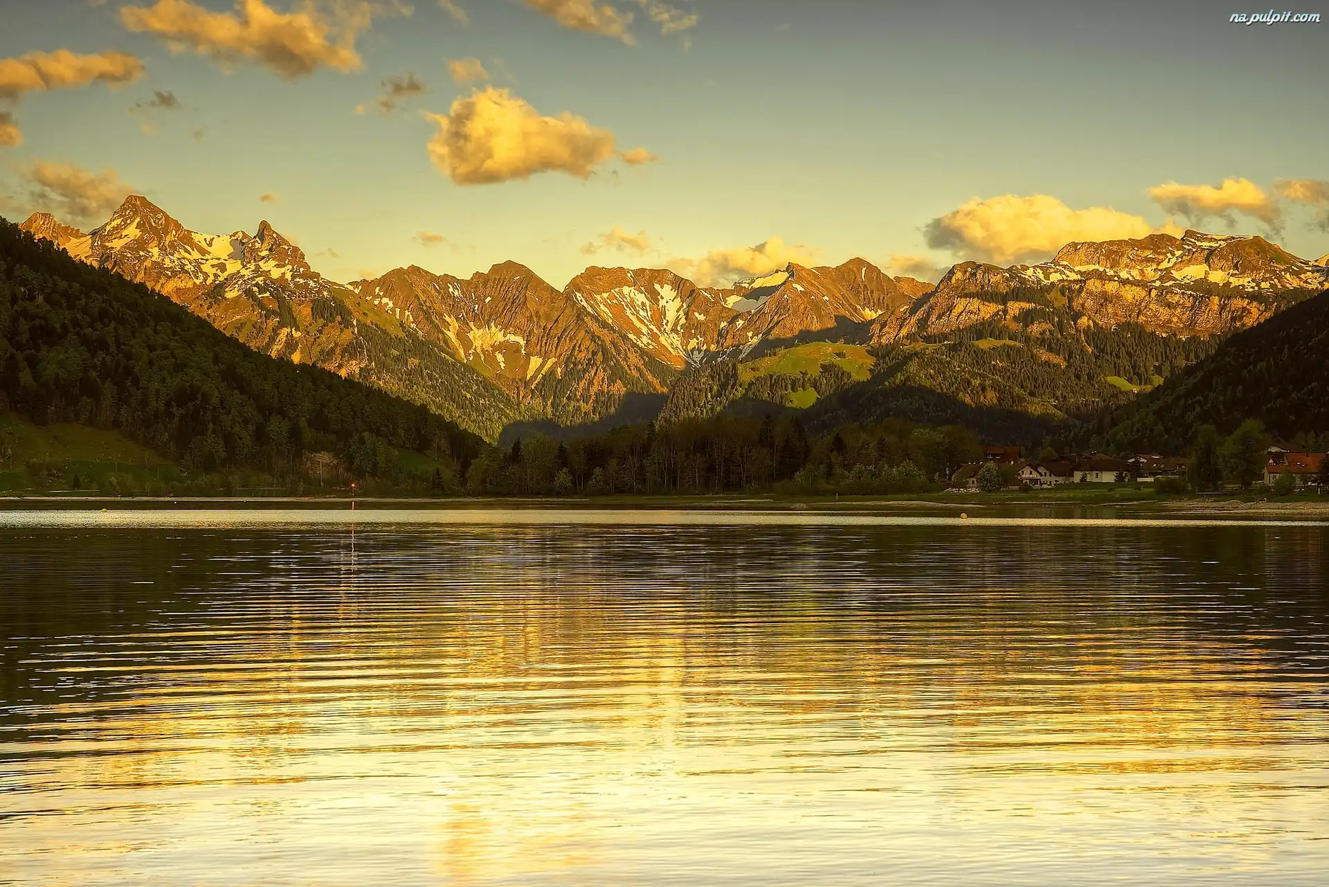 Szwajcaria, Góry, Słońca, Zachód, Jezioro