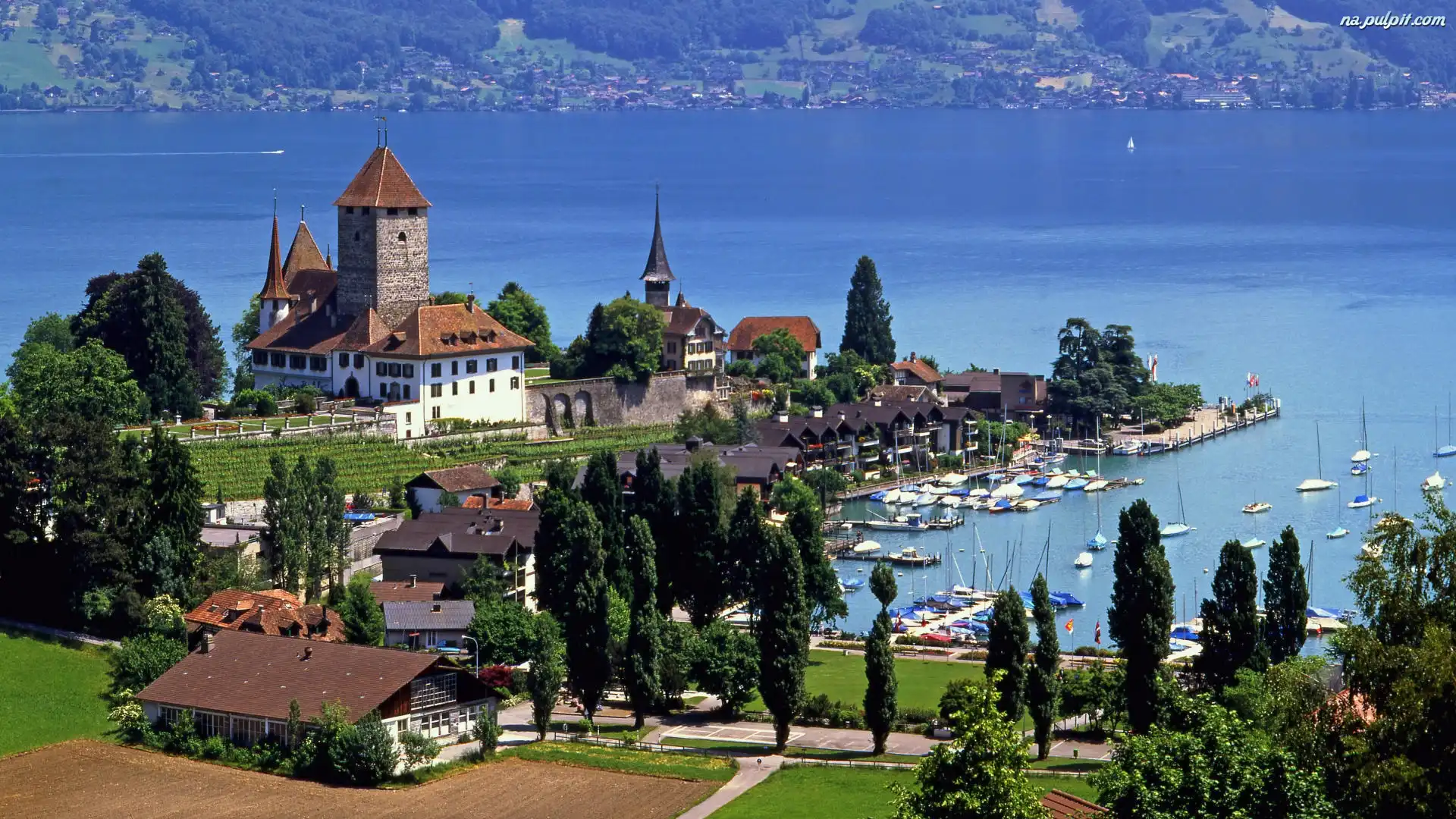 Szwajcaria, Miasto Spiez, Zamek Spiez Castle, Jezioro Thun Na Pulpit