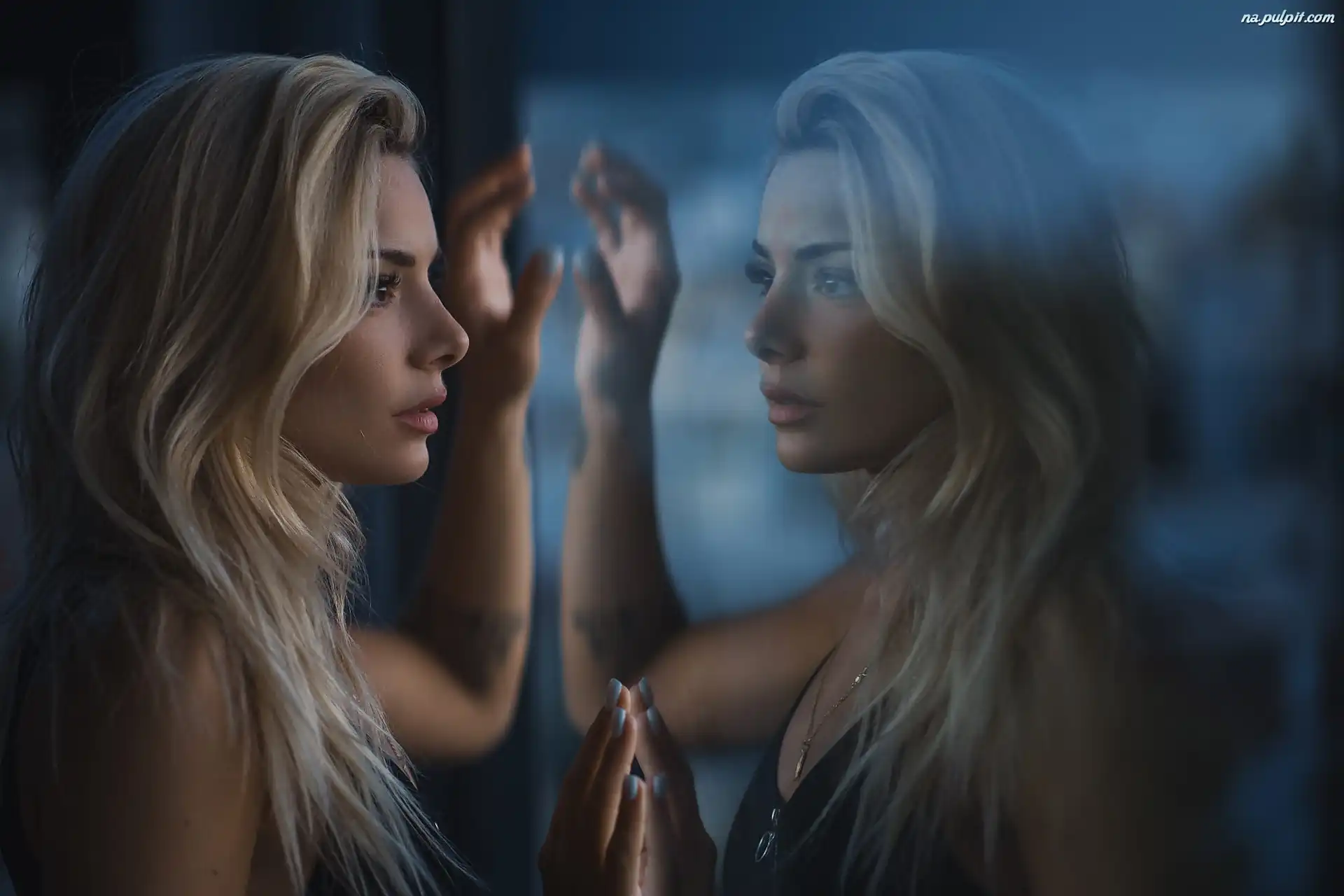 Szyba, Zamyślona, Blondynka, Kobieta, Odbicie