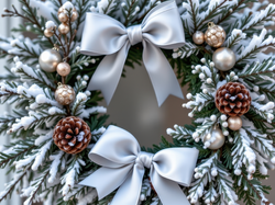 Szyszki, Gałązki, Kokardy, Boże Narodzenie, AI, Bombki, Wianek, Ośnieżone
