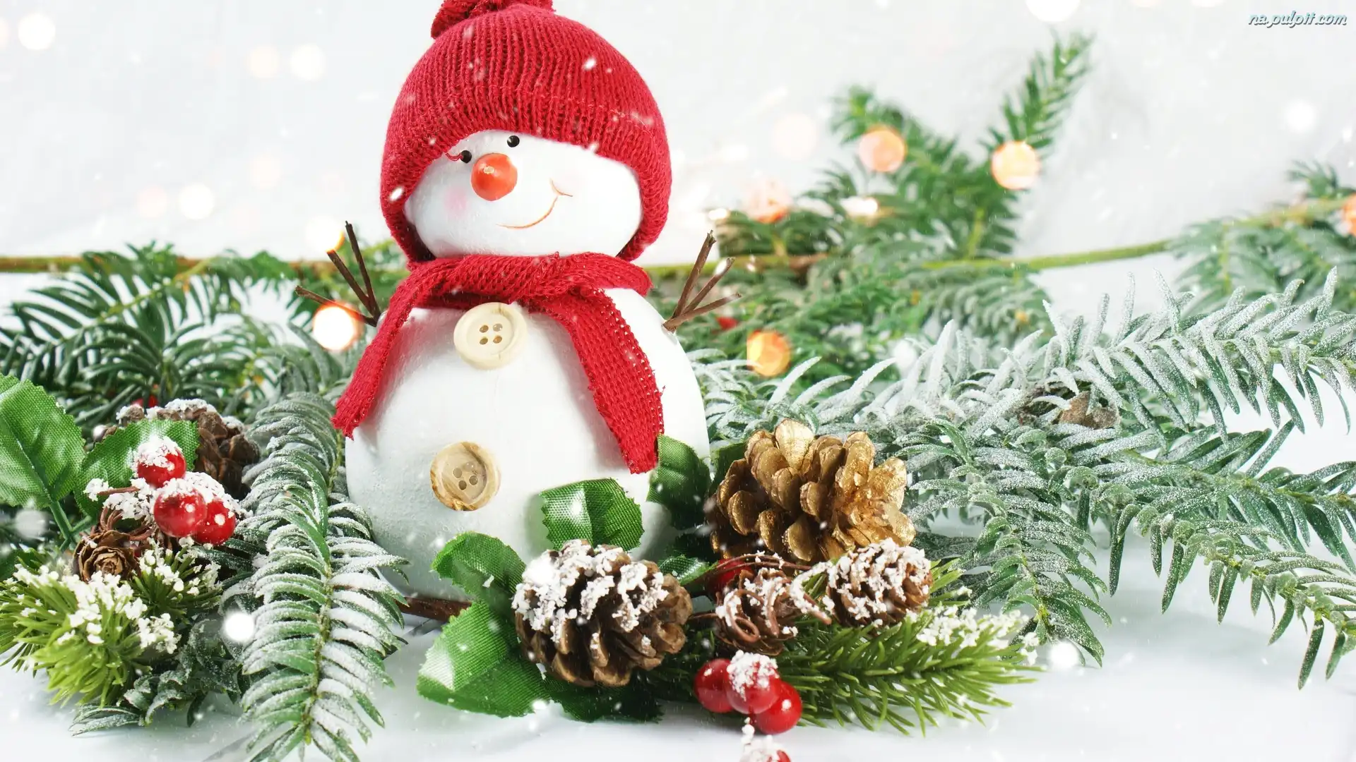 Szyszki, Bałwanek, Świąteczna, Dekoracja, Gałązki Na Pulpit