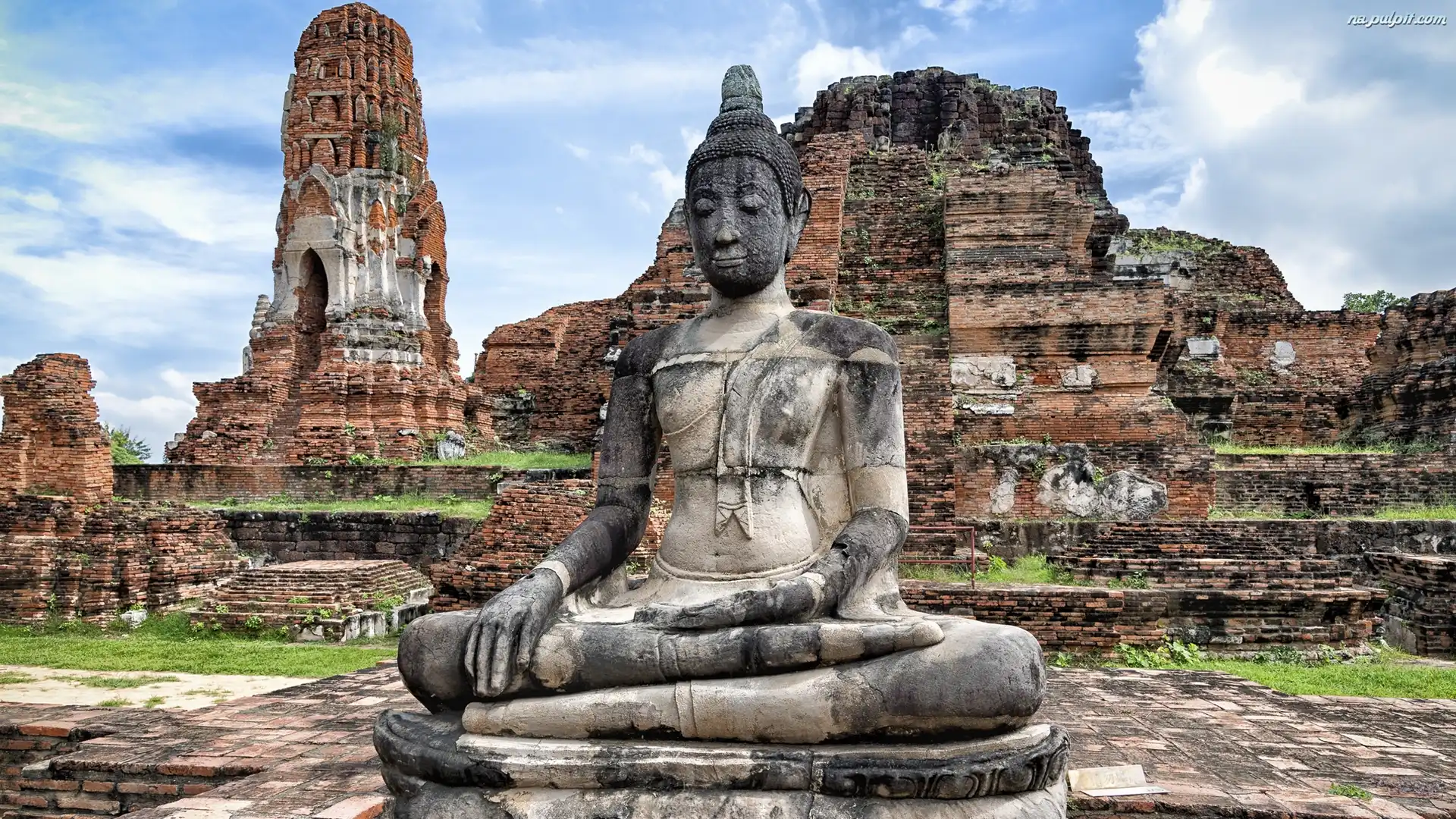 Miasto Ayutthaya, Ruiny, Świątynia Wat Mahathat, Posąg Buddy, Tajlandia Na Pulpit