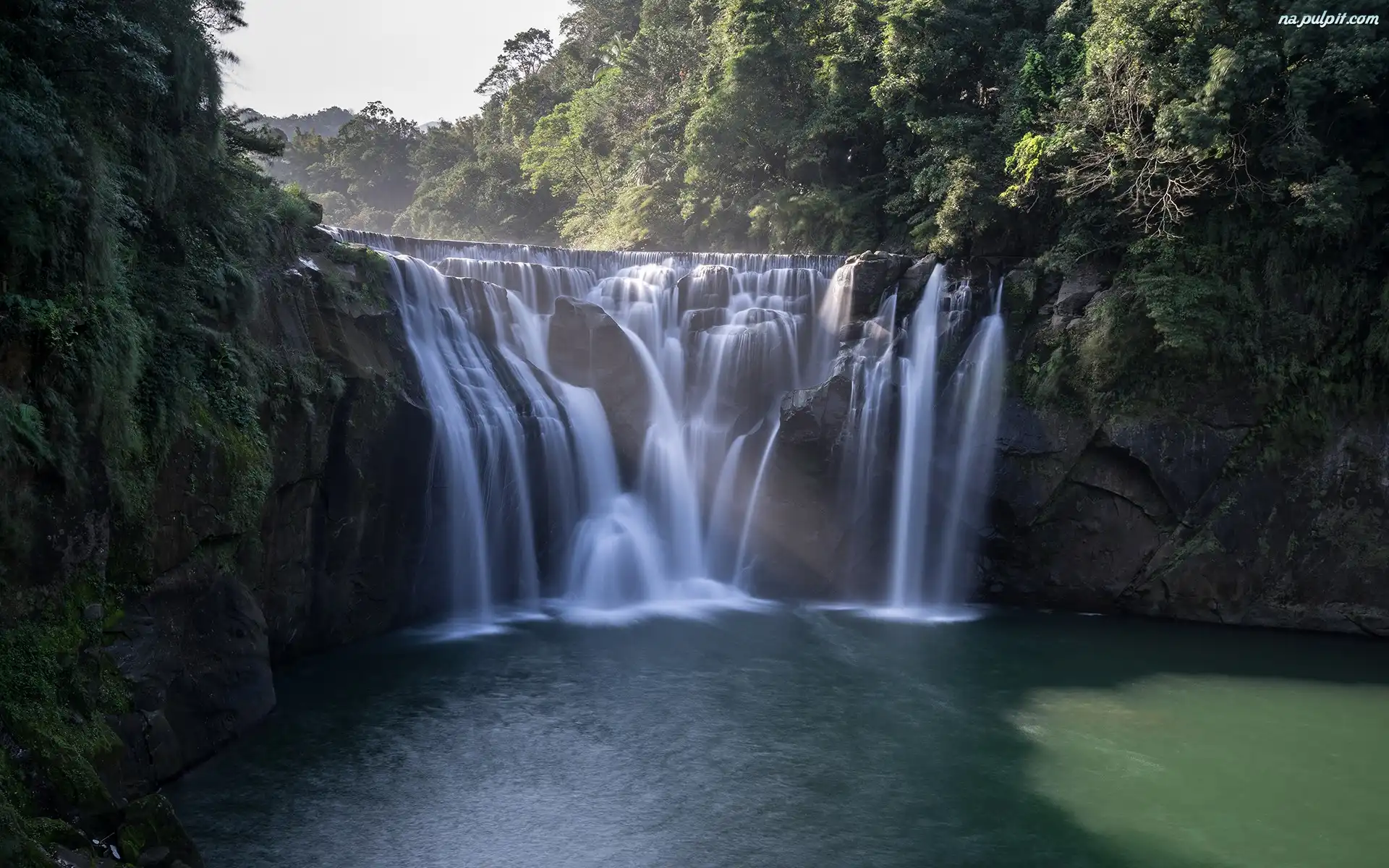 Nowe Tajpej, Rzeka, Skały, Wodospad Shifen, Tajwan, Drzewa Na Pulpit
