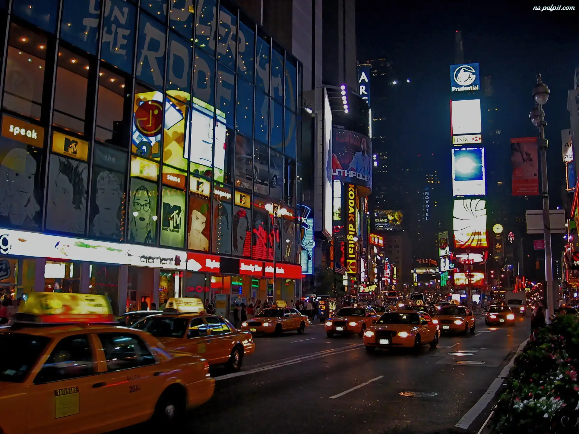 Taksówki, Times Square, Nowy Jork, Żółte Na Pulpit