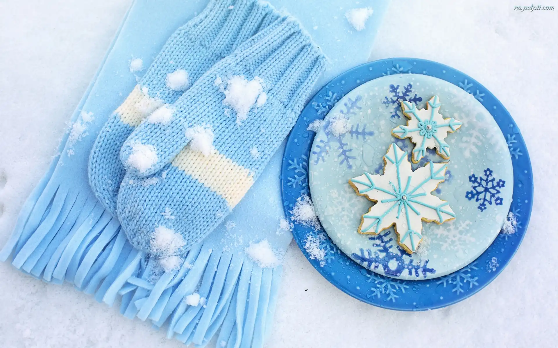 Talerz, Rękawiczki, Niebieskie, Ciasteczka, Szalik Na Pulpit