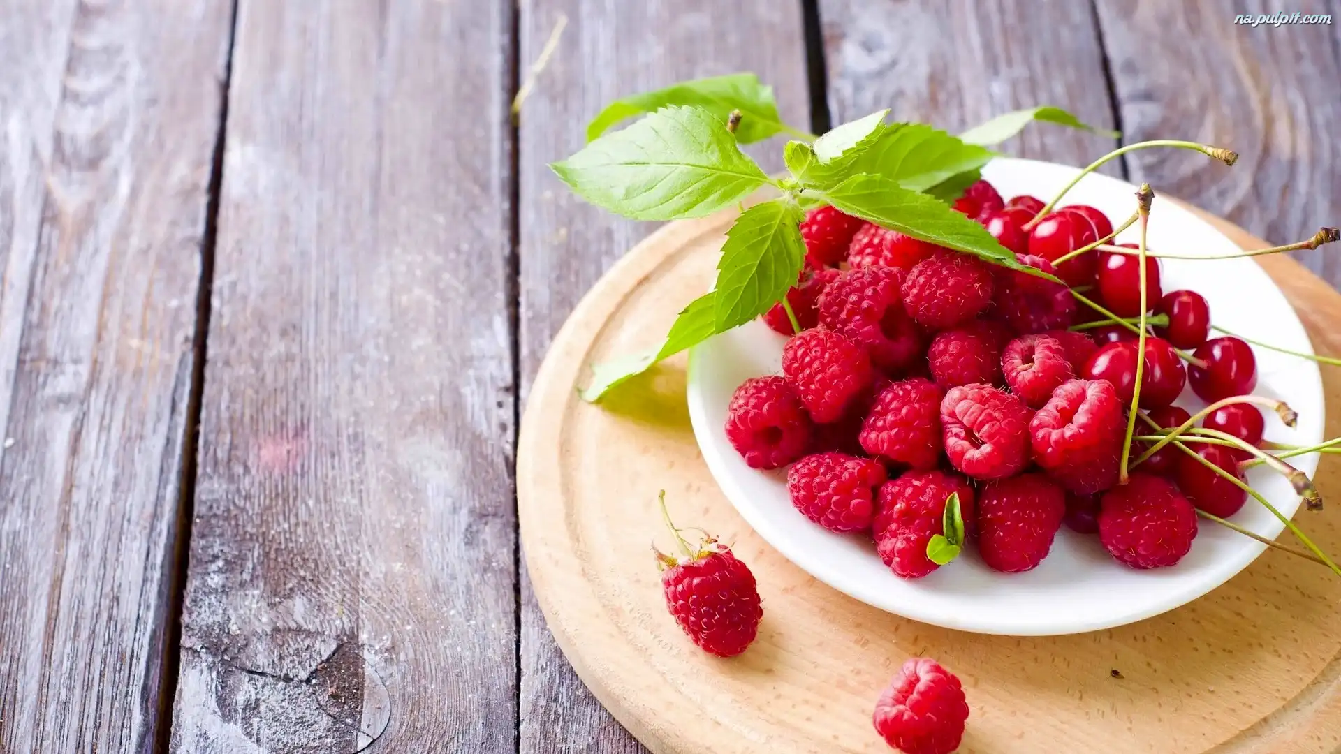 Talerz, Maliny, Owoce, Wiśnie Na Pulpit