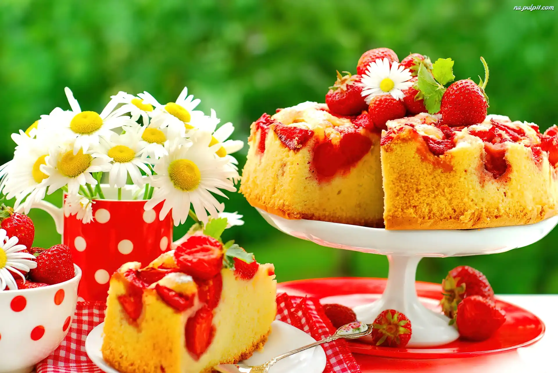 Talerze, Truskawki, Ciasto, Kawiaty Na Pulpit