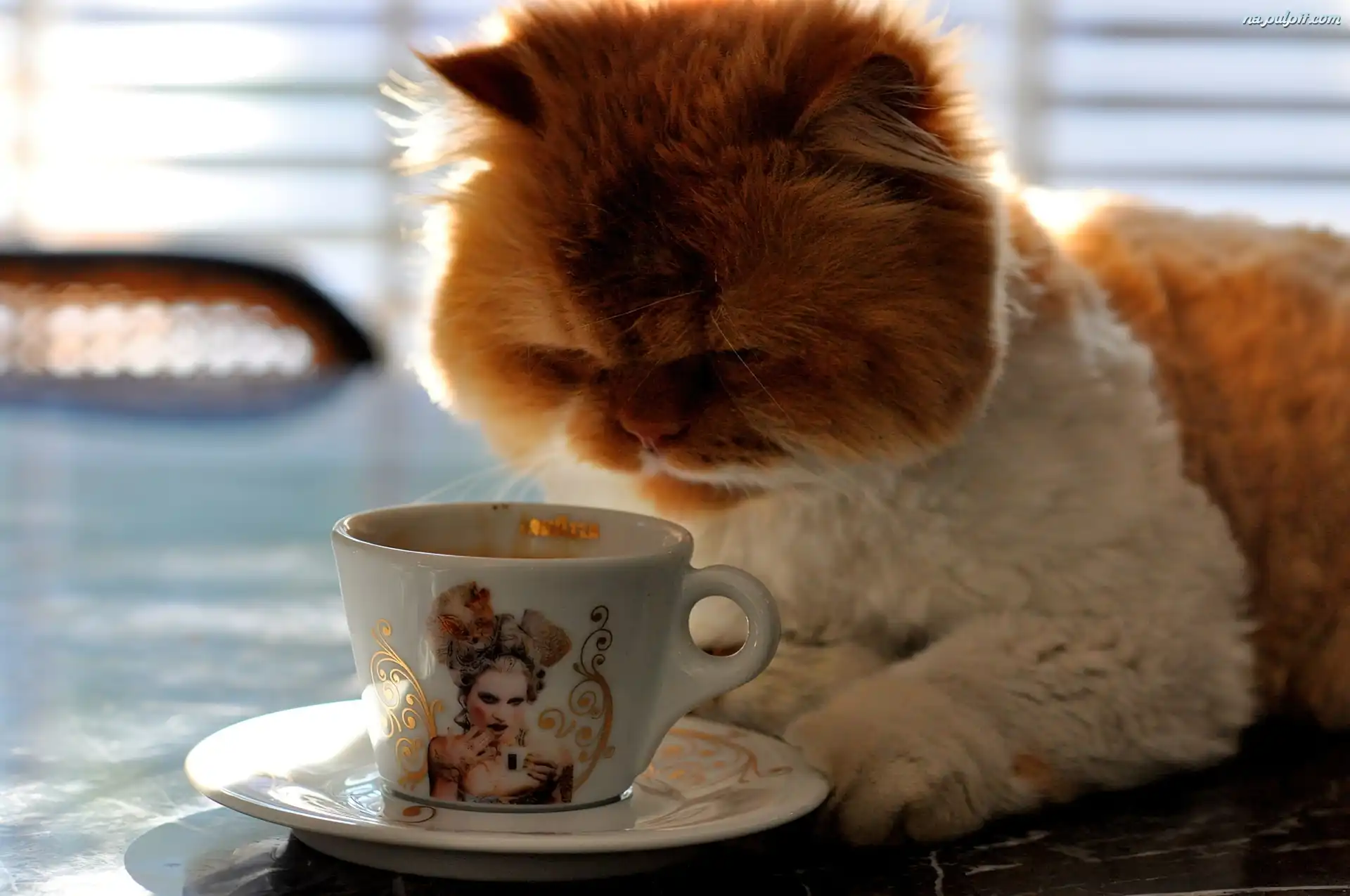 Talerzyk, Kot, Biały, Rudo, Filiżanka