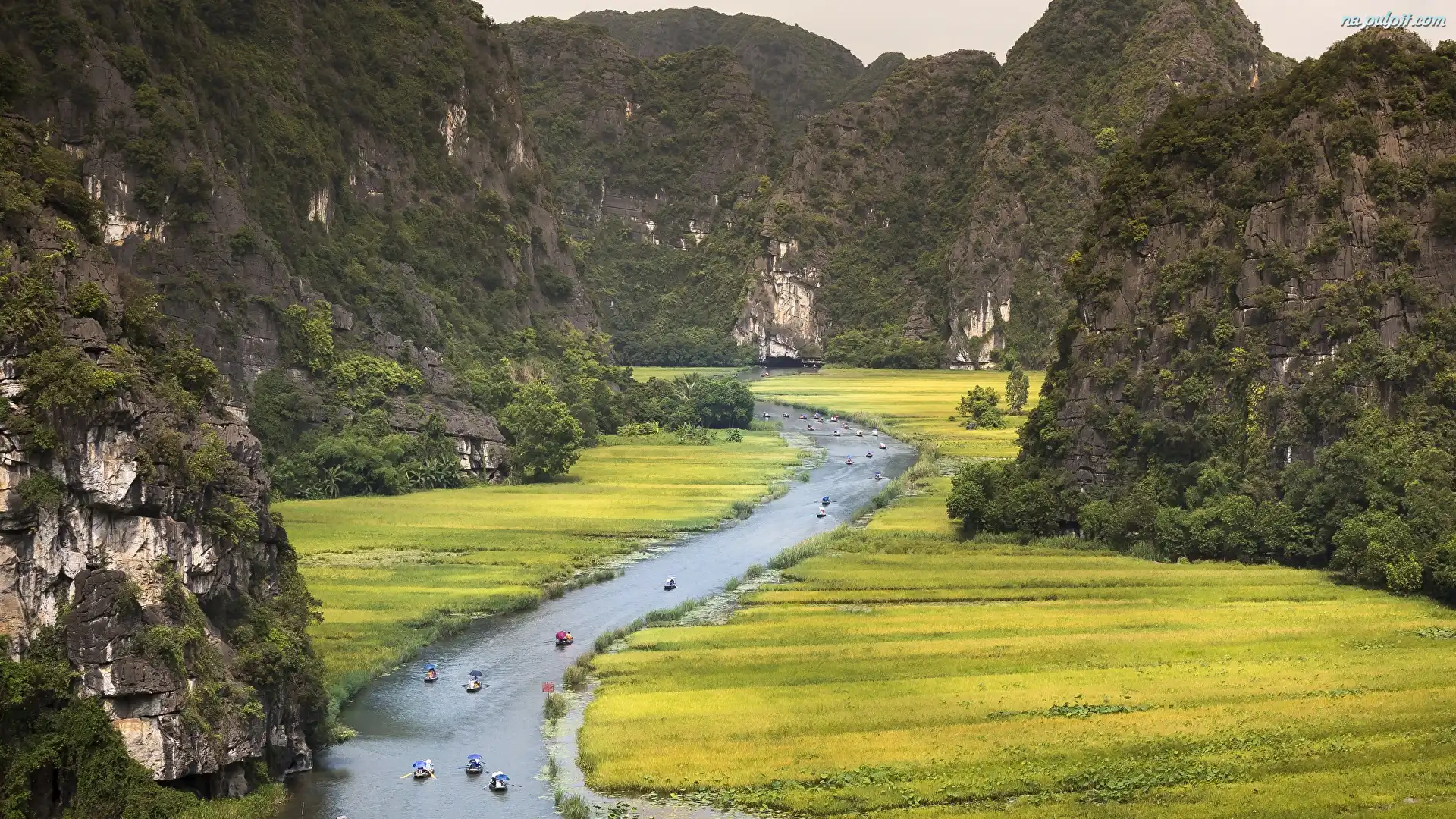 Tam Coc Ninh Binh, Prowincja Ninh Binh, Atrakcja turystyczna, Łódki, Rzeka Ngo Dong, Wietnam, Góry Na Pulpit |