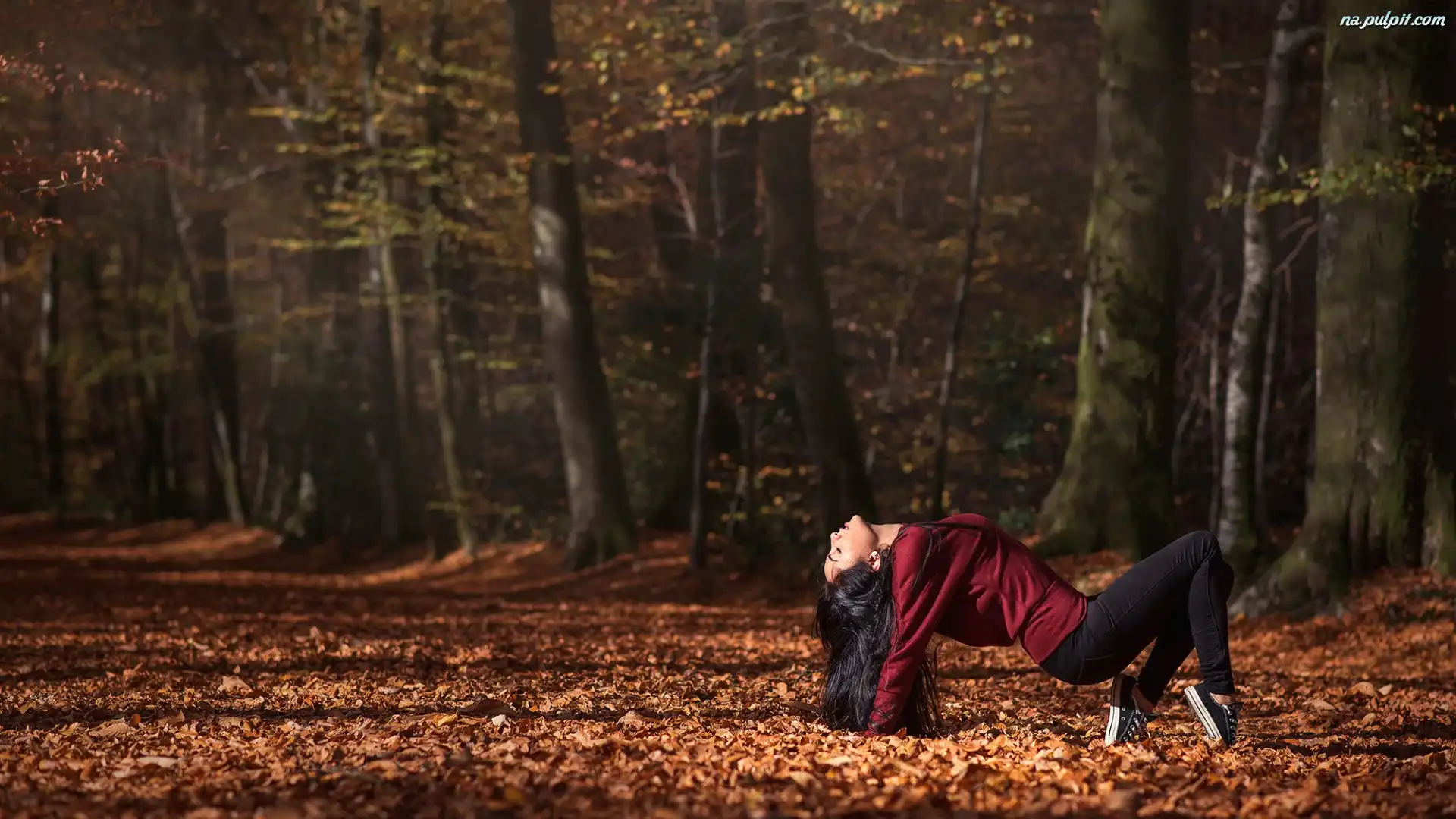 Taniec, Droga, Liście, Jesień, Dziewczyna, Las Na Pulpit