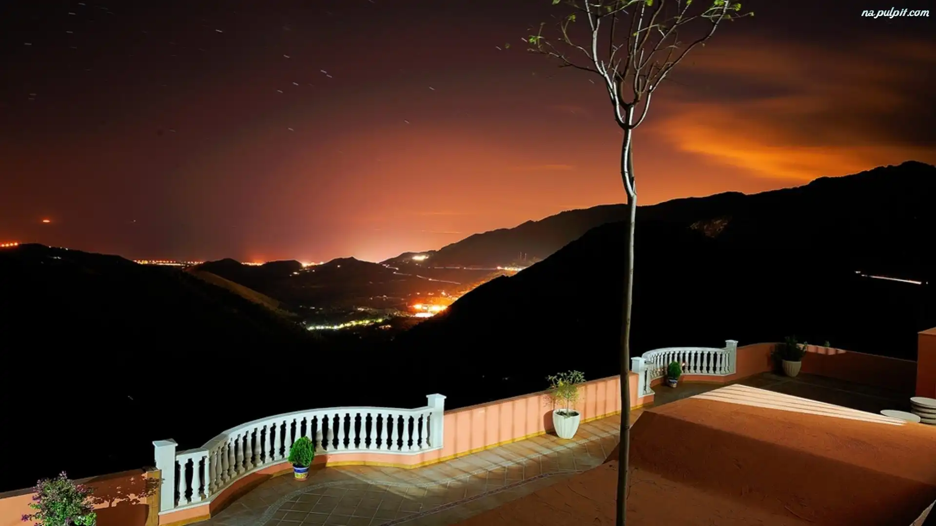 Taras, Miasto, Góry, Nocą Na Pulpit