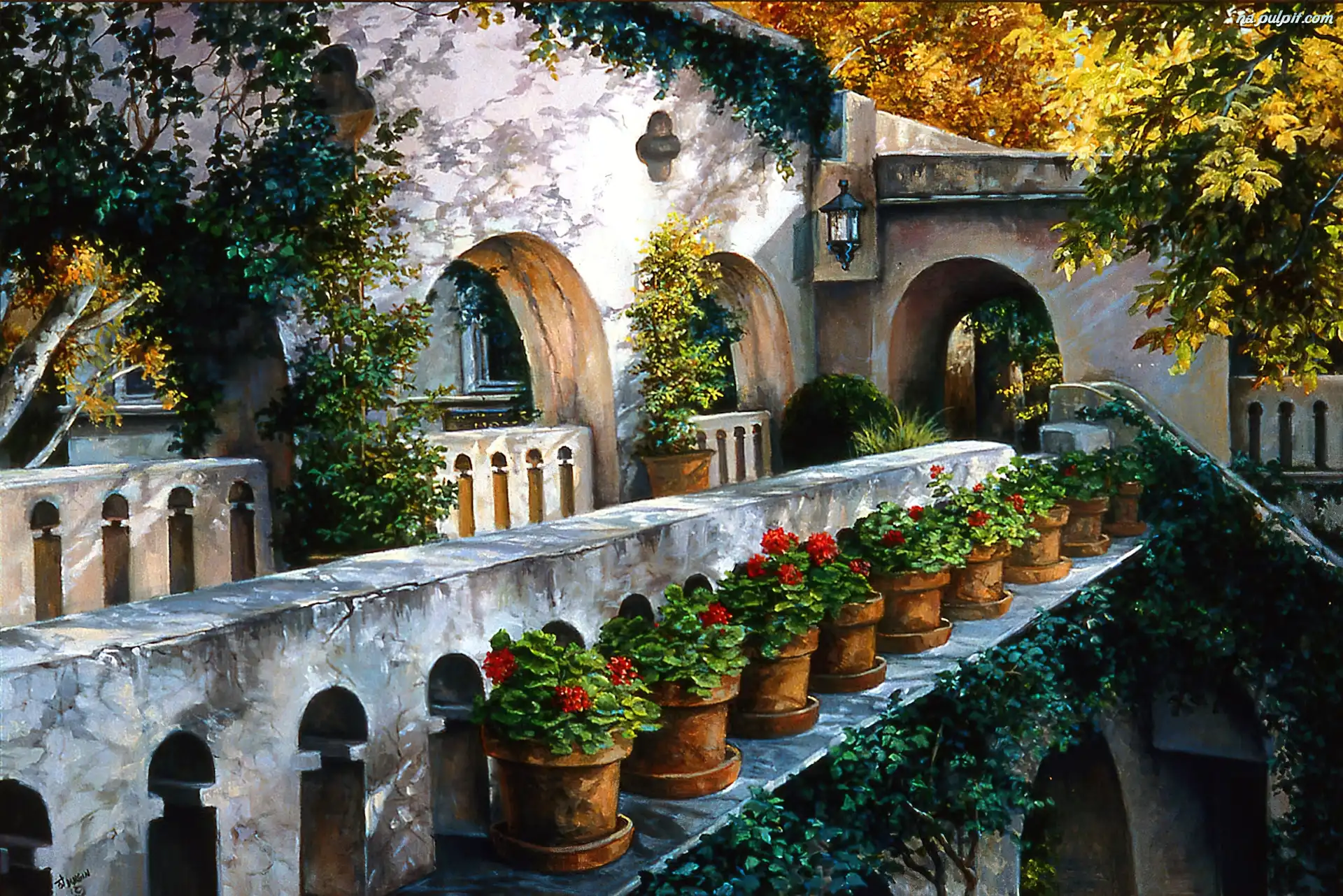 Taras, Fasada, Kwiaty, Obraz, Domu Na Pulpit