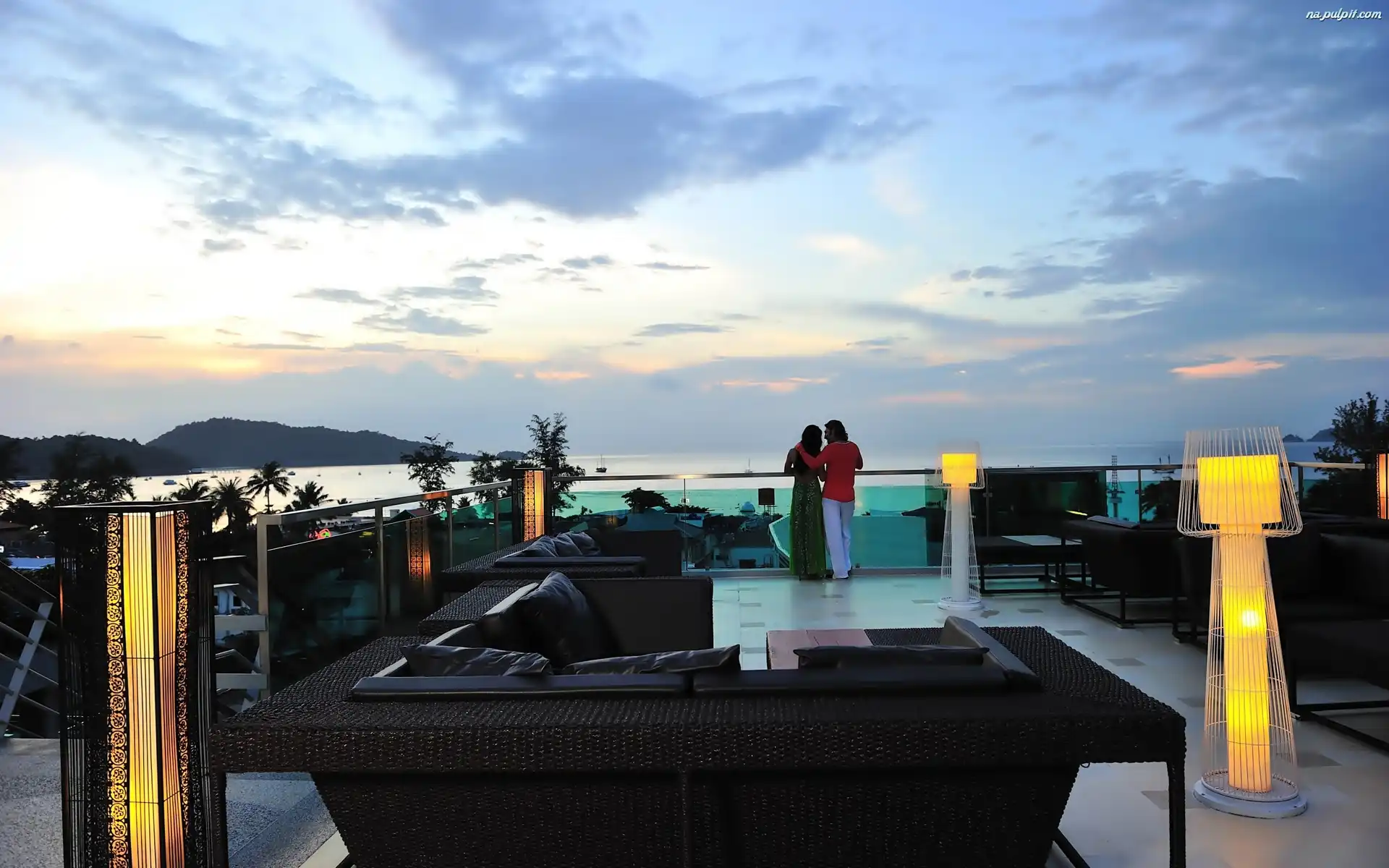 Para, Taras, Zakochana, Góry, Widokowy, Hotel, Morze