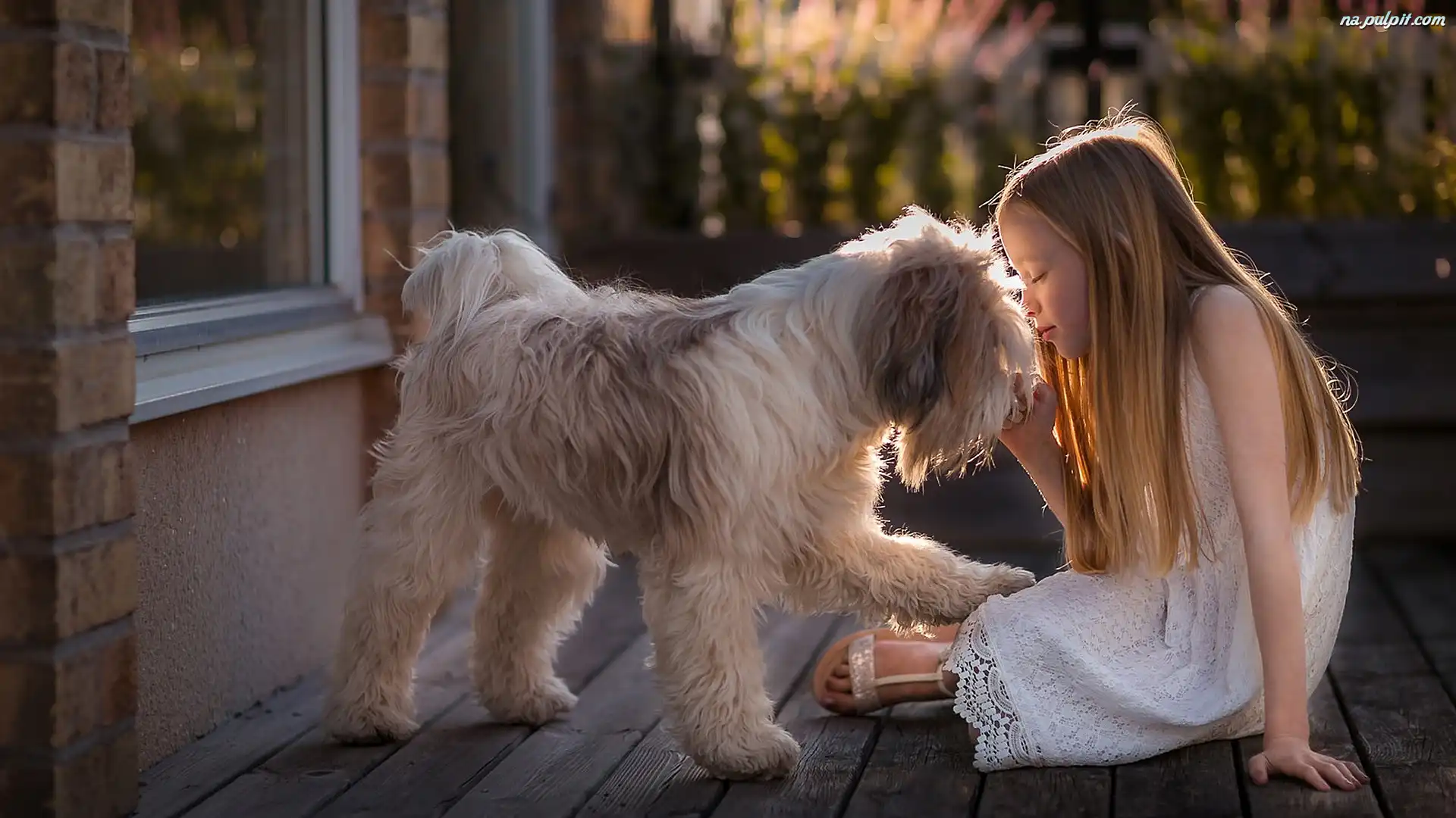 Taras, Dziewczynka, Terier tybetański, Pies, Okno Na Pulpit