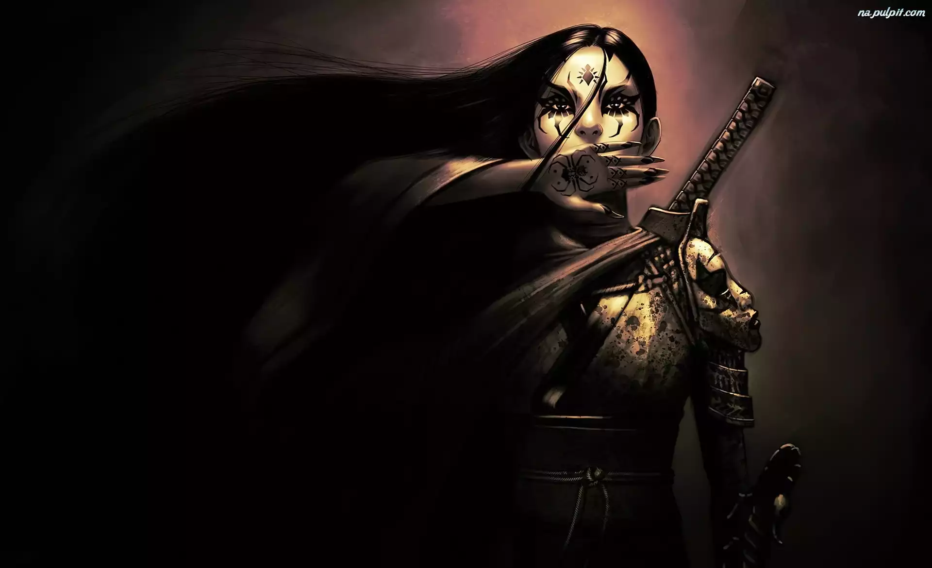 Tatuaż, Twarz, Kobieta, Miecz Na Pulpit