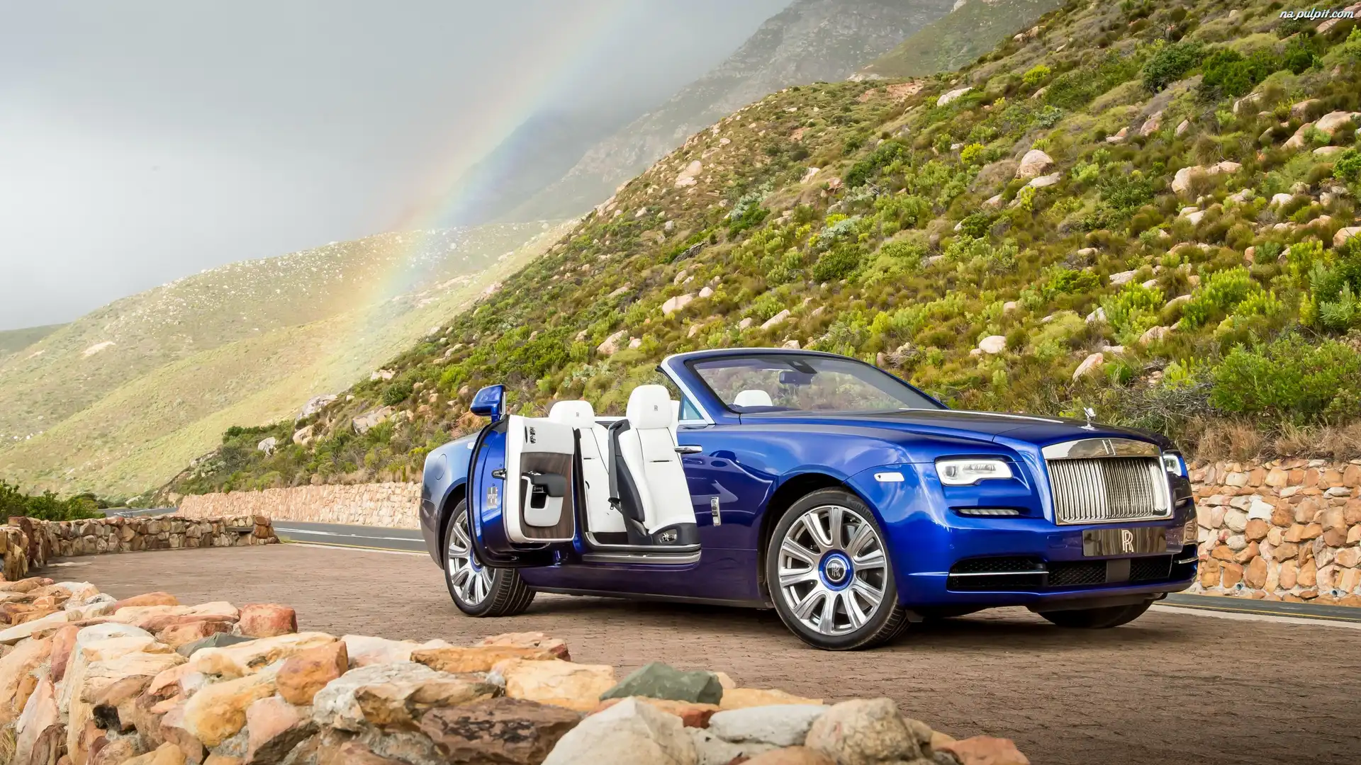 Tęcza, 2016, Kamienie, Niebieski, Droga, Wzgórza, Rolls-Royce Dawn, Kabriolet Na Pulpit