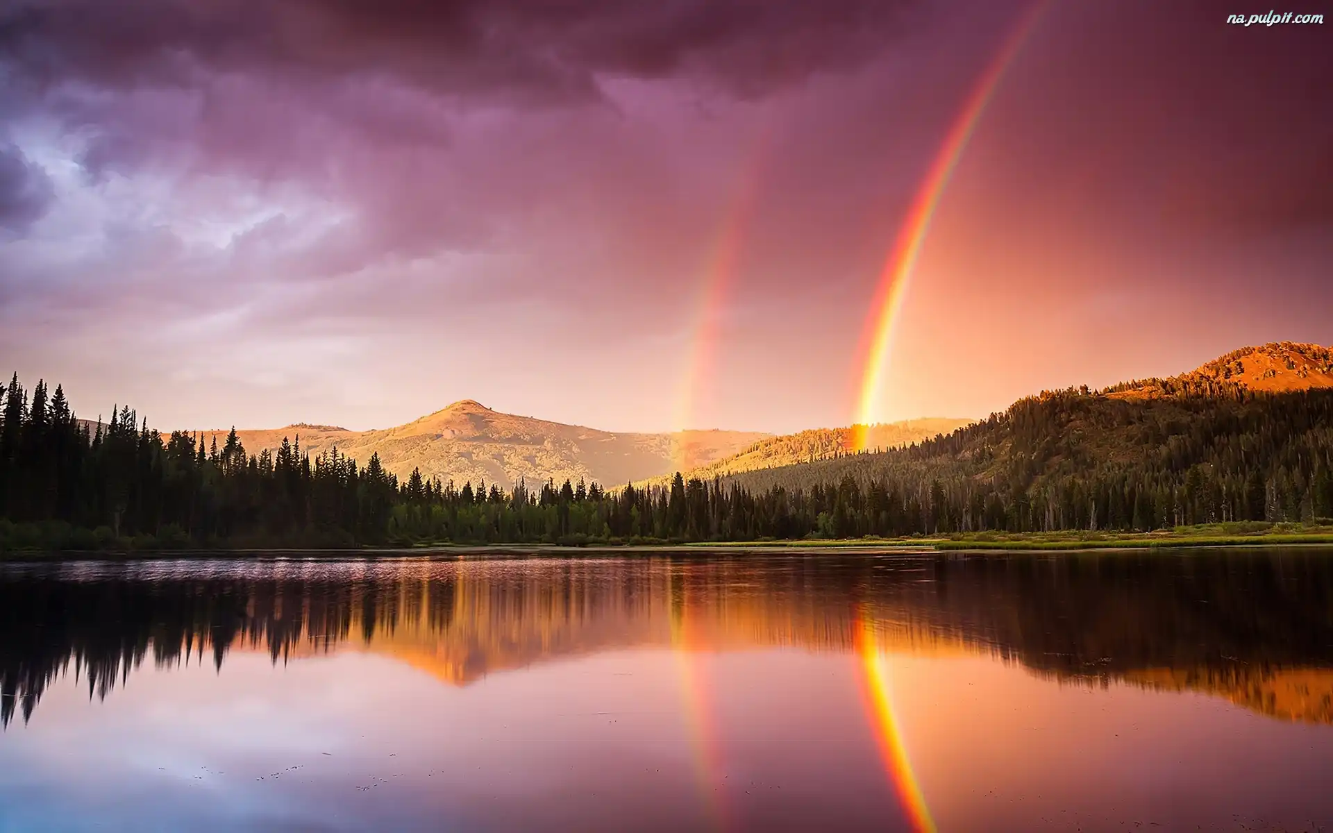 Tęcza, Las, Las, Góry, Jezioro Na Pulpit