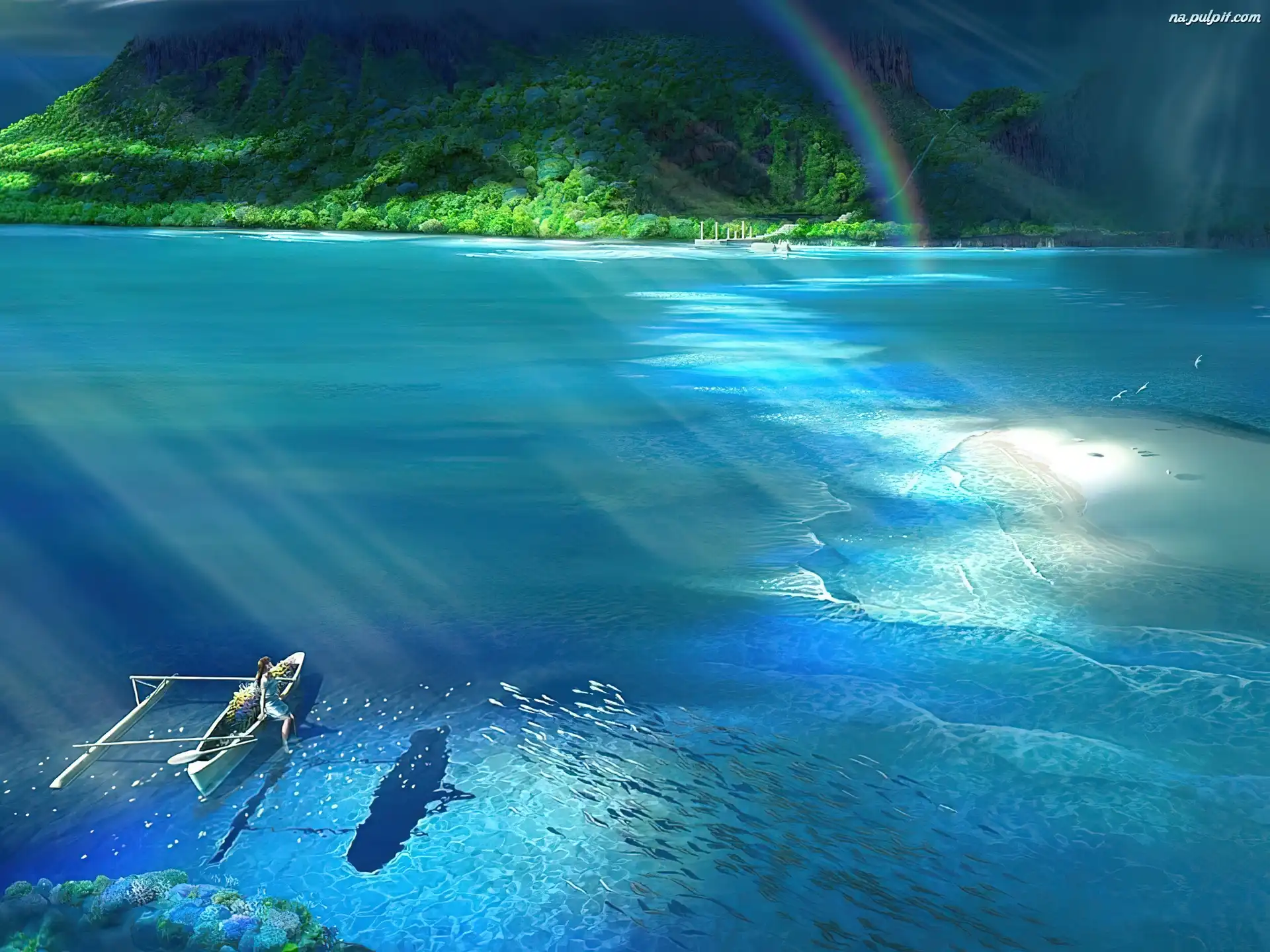 Łajba, Woda, Tęcza, Ptaki Na Pulpit