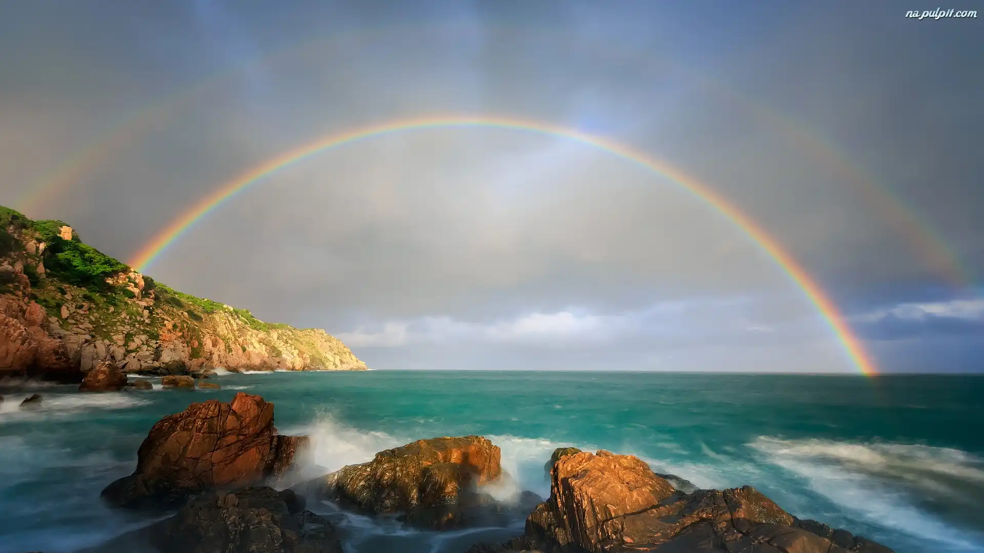 Tęcza, Skały, Morze, Wybrzeże, Fale Na Pulpit