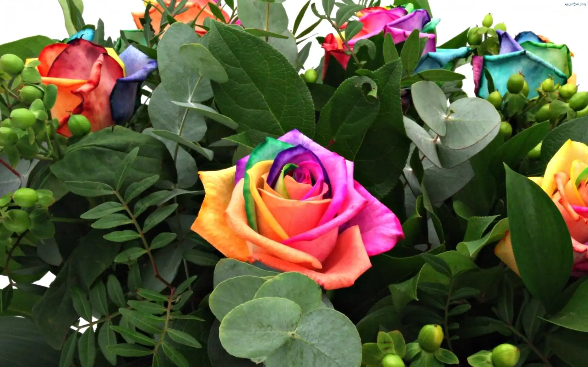Tęczy, Róże, Bukiet, Kwiaty, Kolory Na Pulpit
