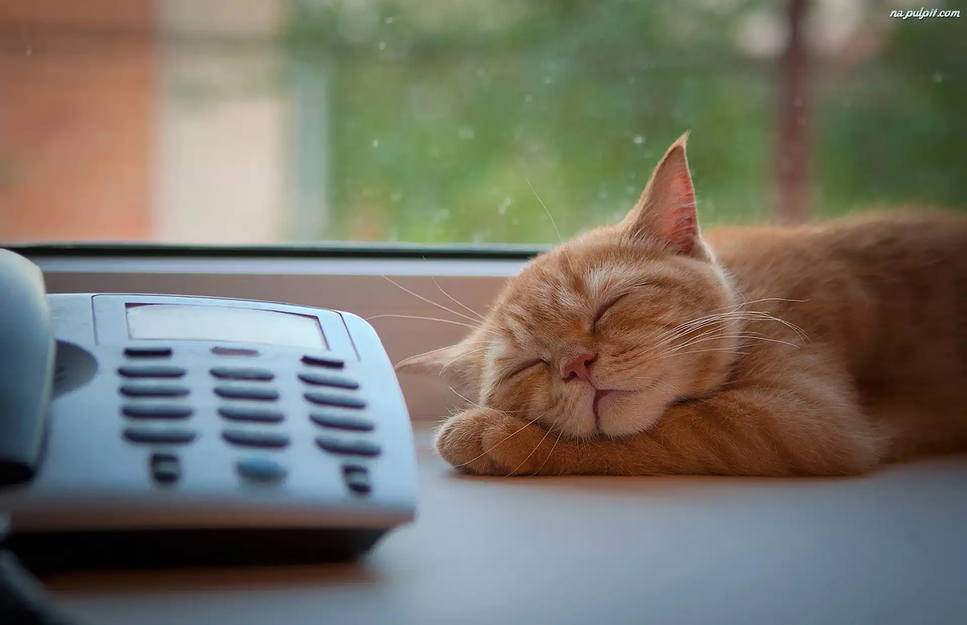 Telefon, Rudy, Śpiący, Kot Na Pulpit