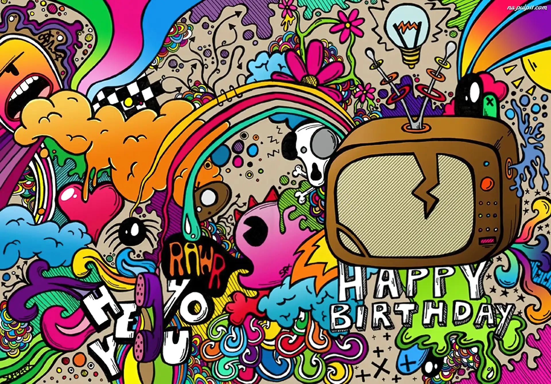 Telewizor, Kolorowa, Urodziny, Grafika