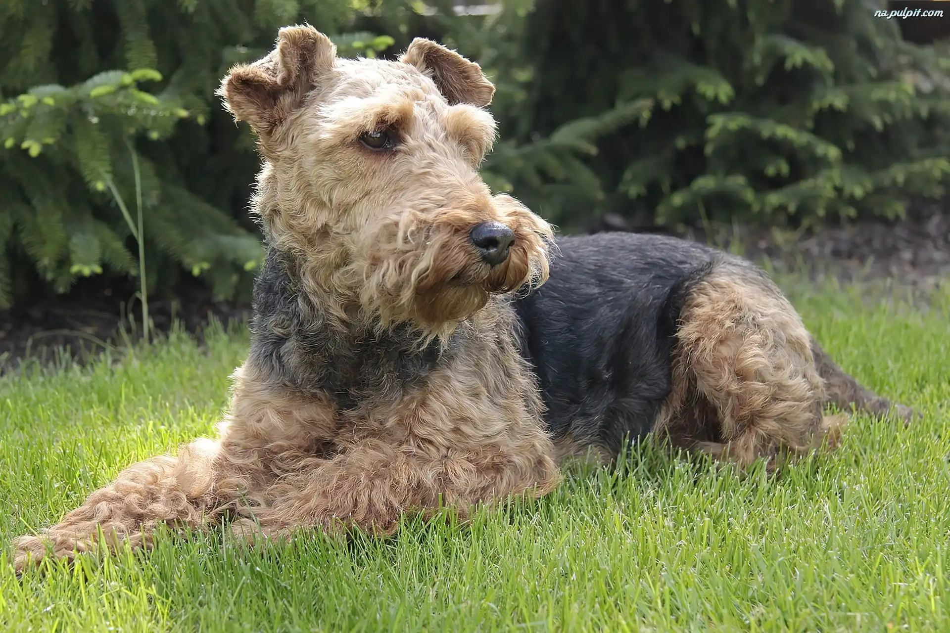 obroża, Terier walijski, zielona maść, czarna, Terier walijski, podpalana Trawa, Terier, Walijski