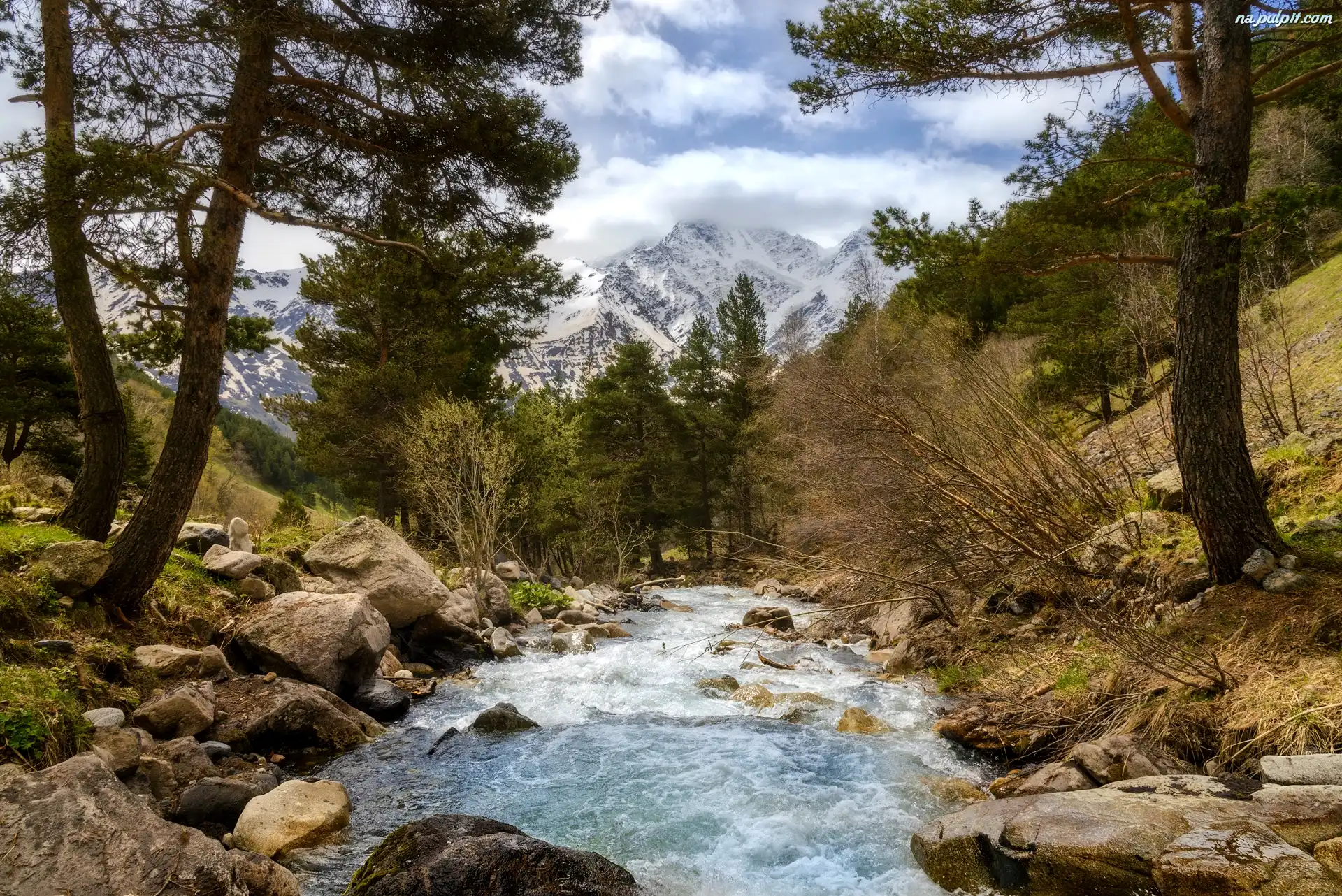 Rosja, Rzeka Baksansky, Kabardo-Bałkaria, Góry, Kamienie, Drzewa, Wąwóz Terskol Na Pulpit