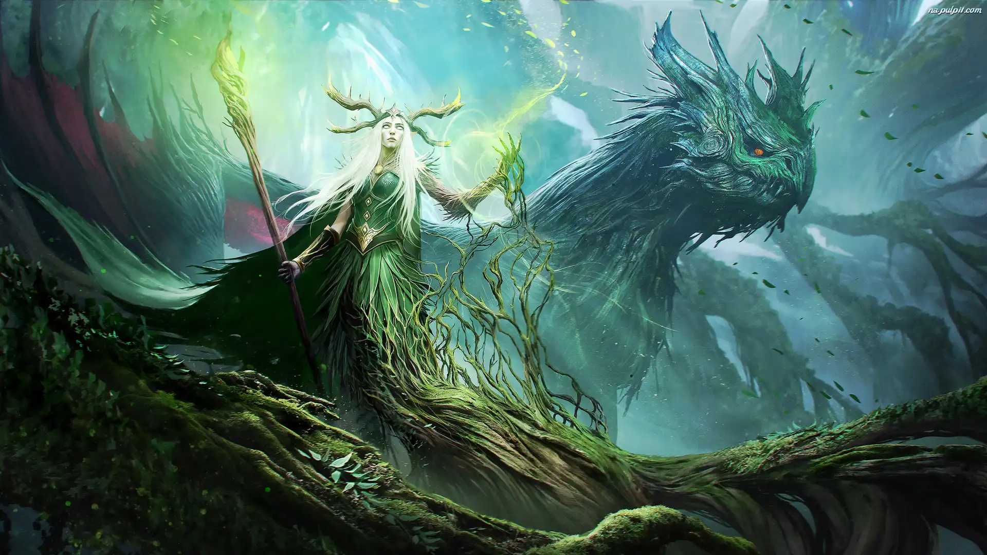 Drzewo, Konary, Century Age of Ashes, The Fate of Dragons, Smok, Season 2, Gra, Kobieta, Postać Na Pulpit |