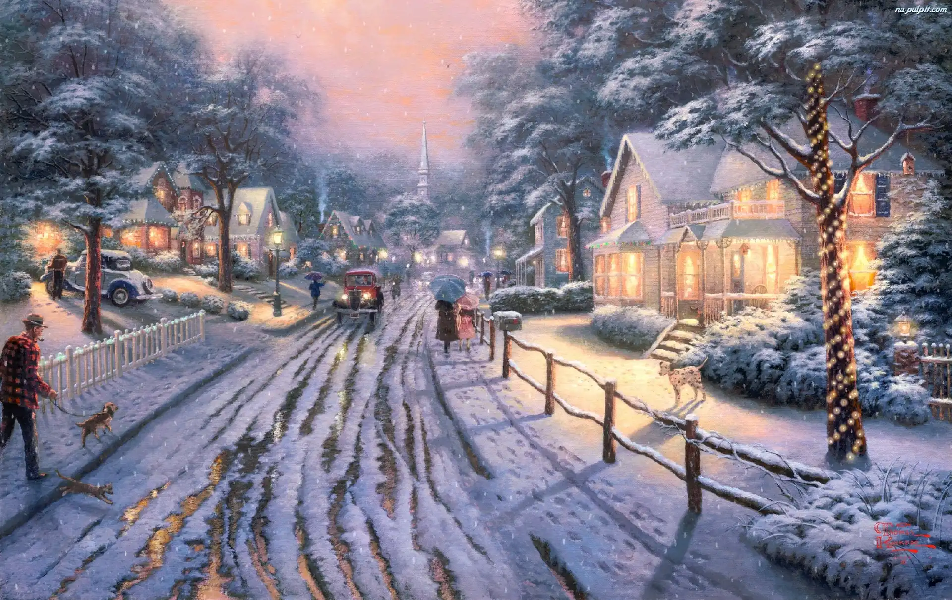 Thomas Kinkade, Miasteczko, Ulica, Zima, Malarstwo