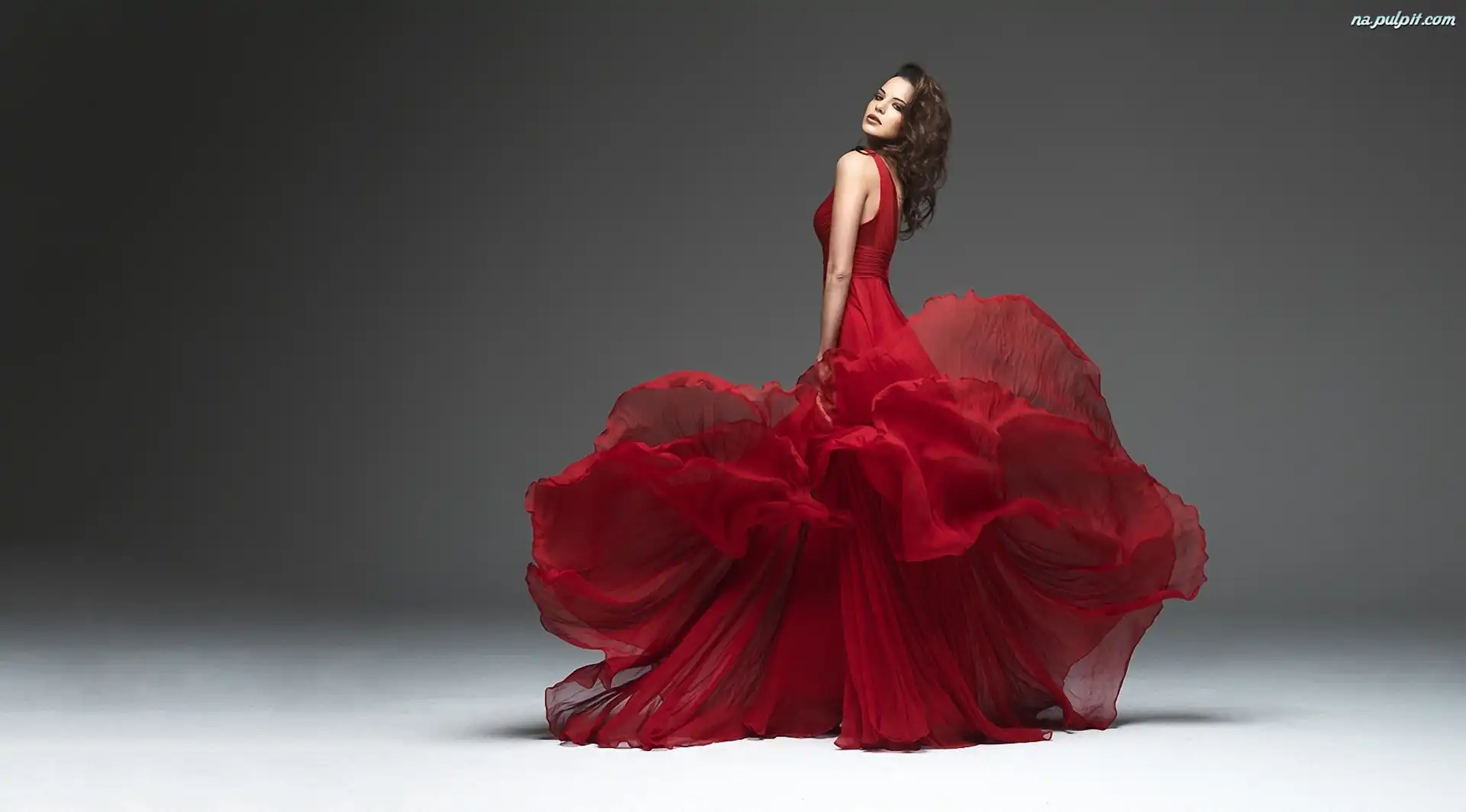 Tiul, Czerwona, Kobieta, Piękna, Suknia Na Pulpit