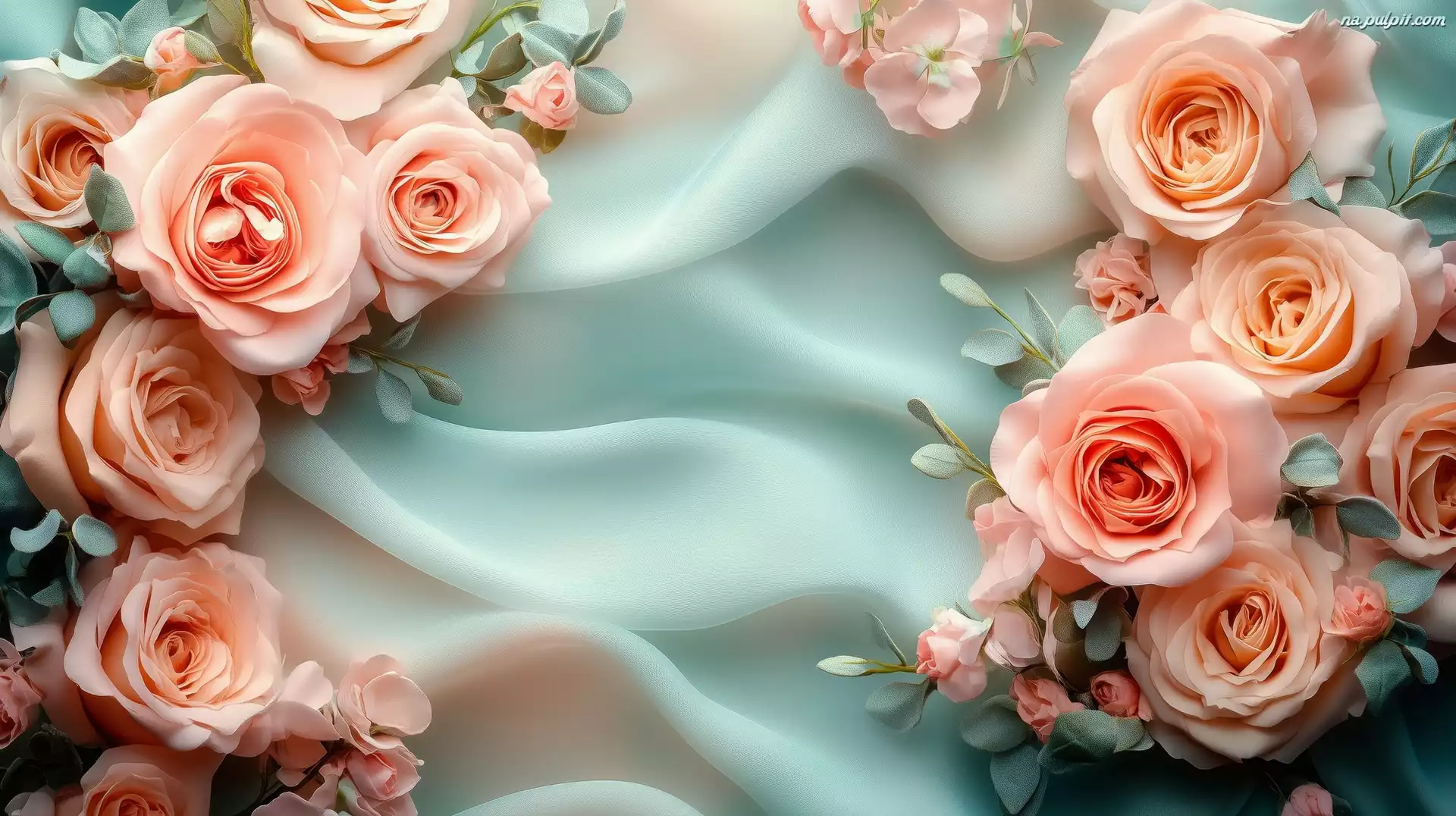 Różowe, Róże, Listki, Tkanina Na Pulpit