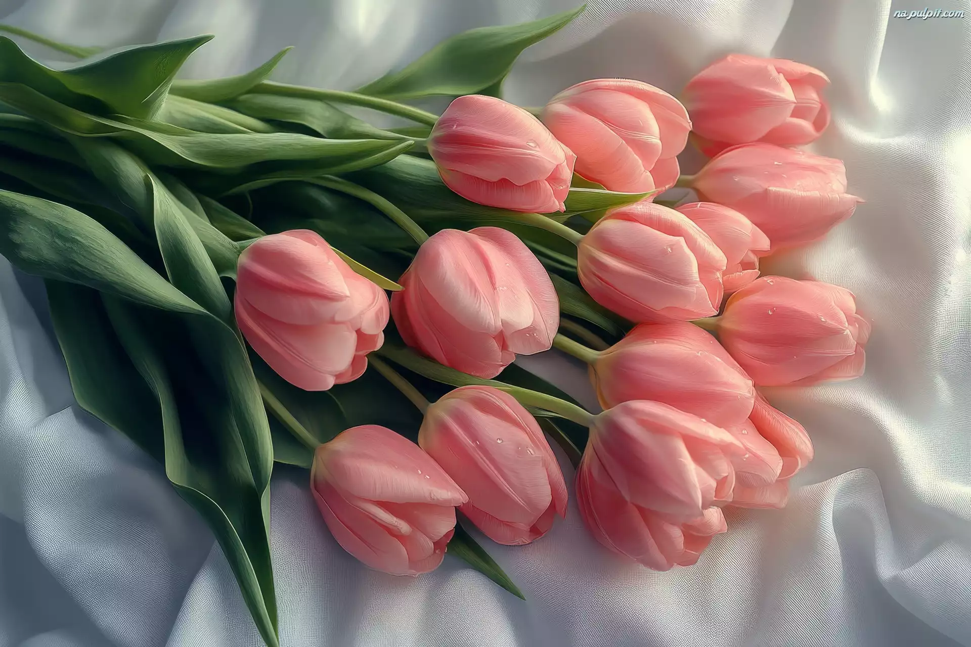 Różowe, Tulipany, Listki, Tkanina Na Pulpit