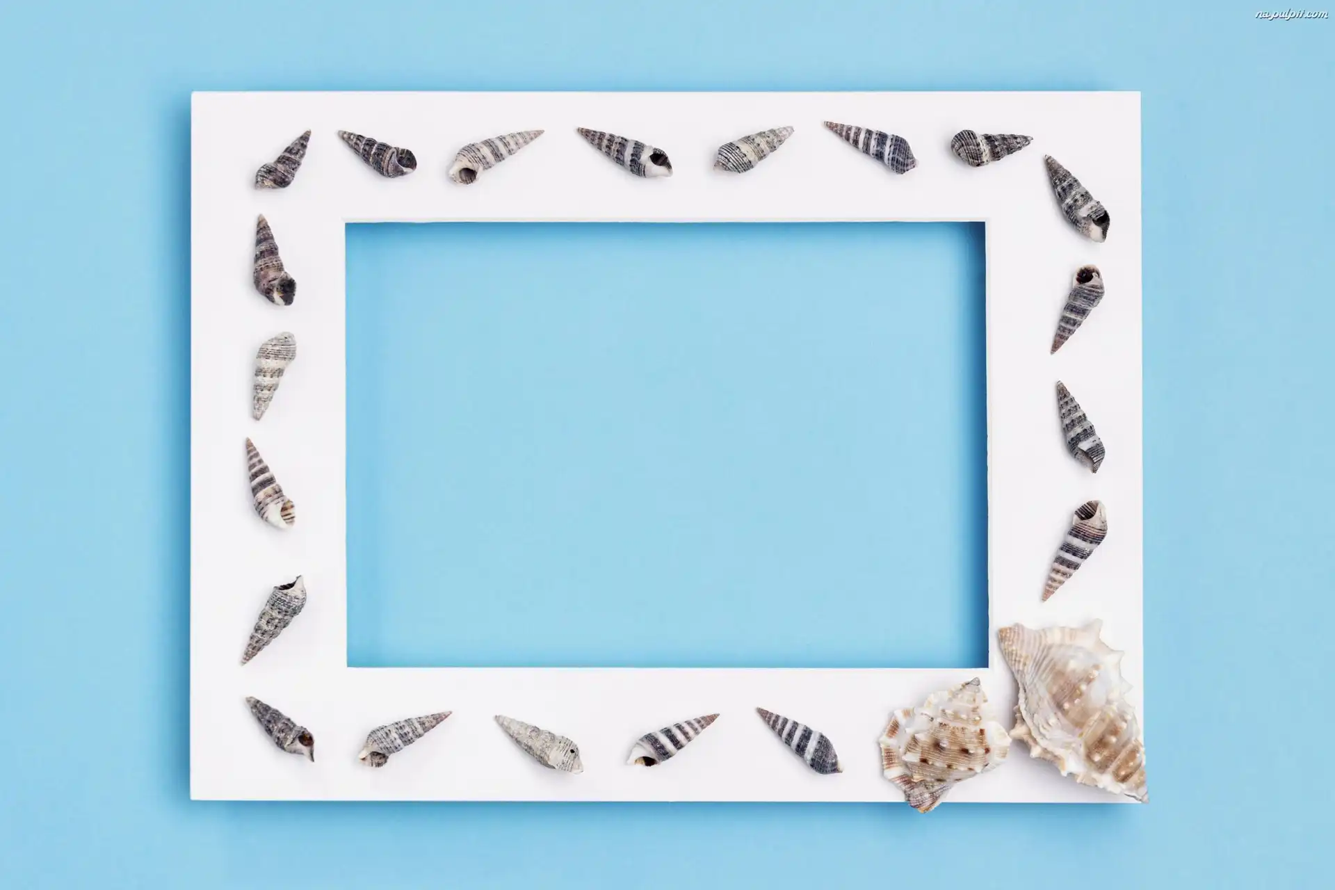 Tło, Muszelki, Ramka, Biała, Niebieskie