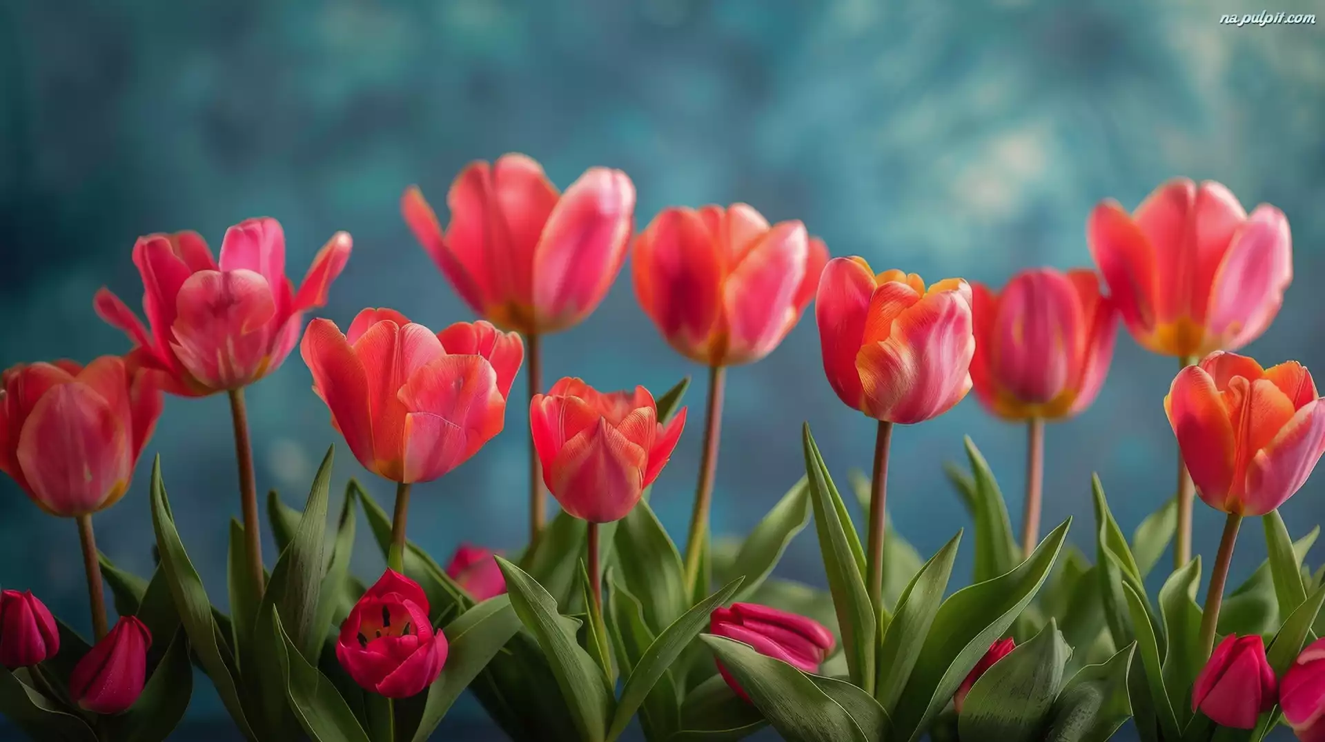 Czerwone, Tulipany, Niebieskie, Tło Na Pulpit