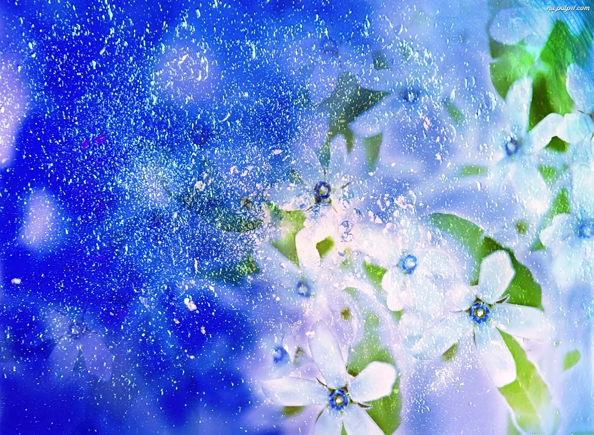 Tło, Kwiatków, Białych, Kompozycja, Niebieskie