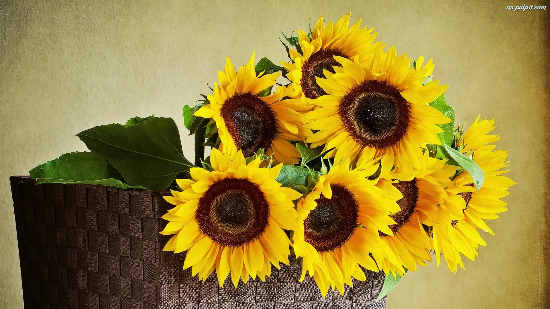Tło, Słoneczniki, Kosz, Brązowe