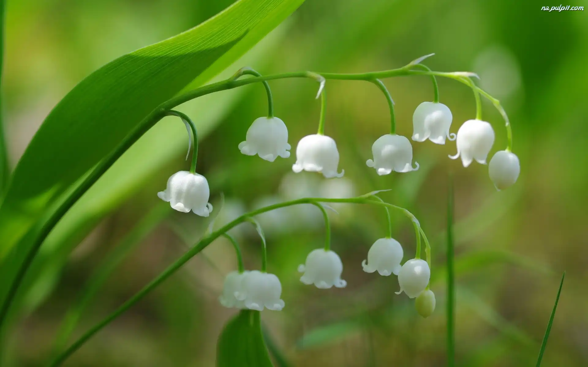 Tło rozmyte, Biała, Konwalia, Kwiaty, Liście Na Pulpit