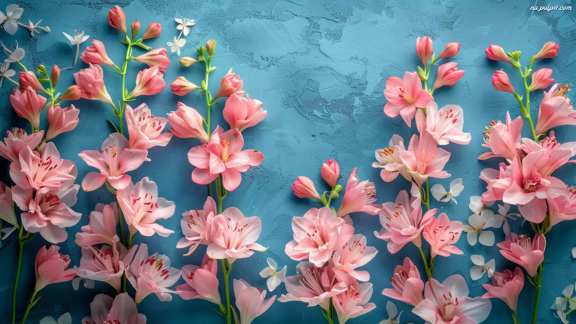 Kwiaty, Różowe, Niebieskie, Tło Na Pulpit