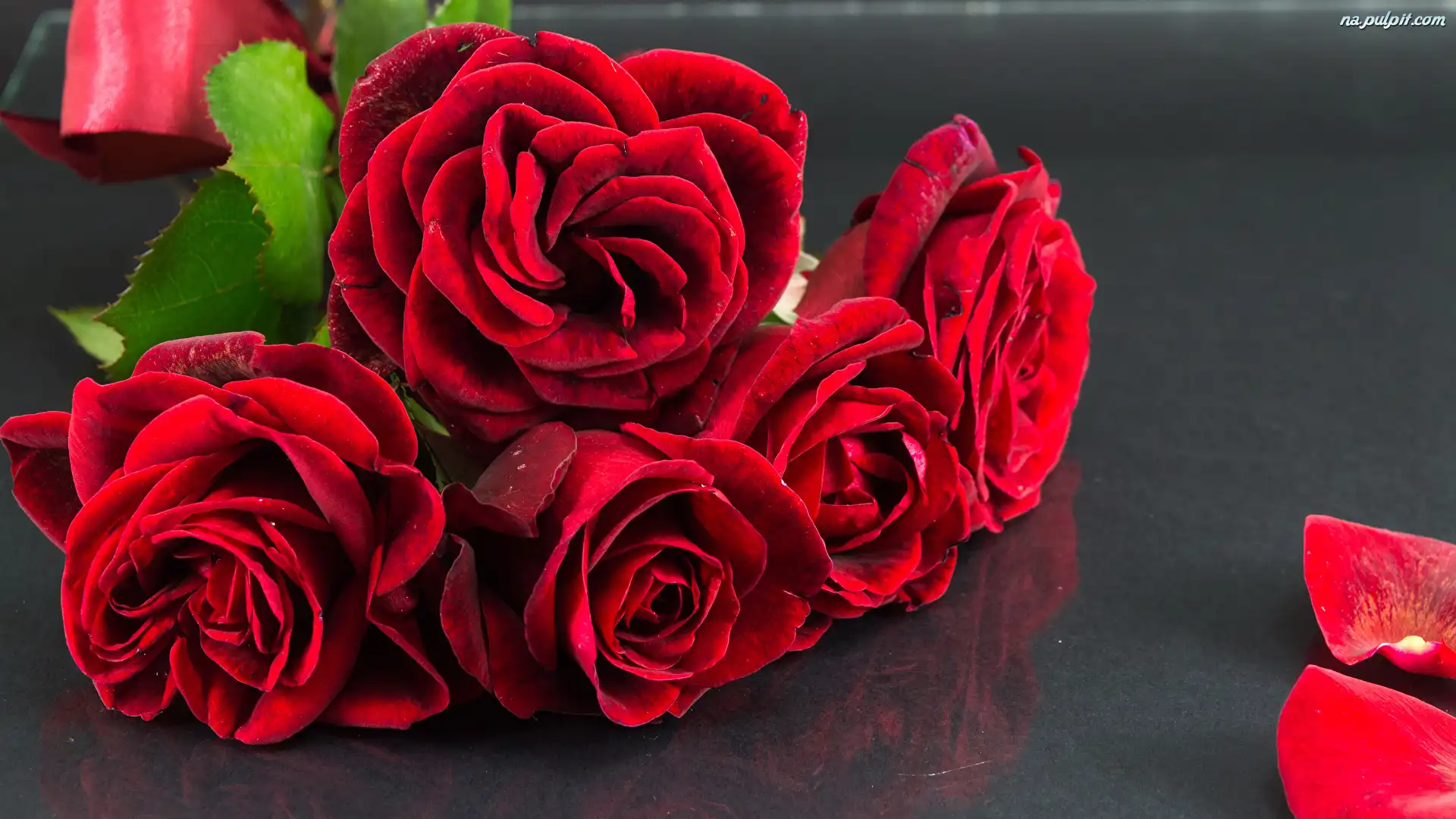 Ciemne tło, Róże, Płatki, Bukiet, Czerwone, Kwiaty, Liście Na Pulpit