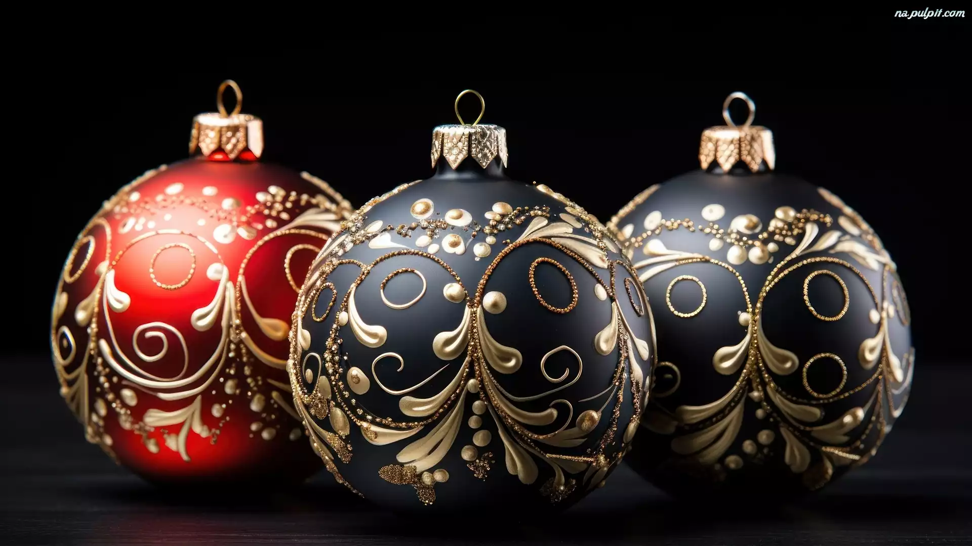 Trzy, Bombki, Ciemne, Tło Boże Narodzenie
