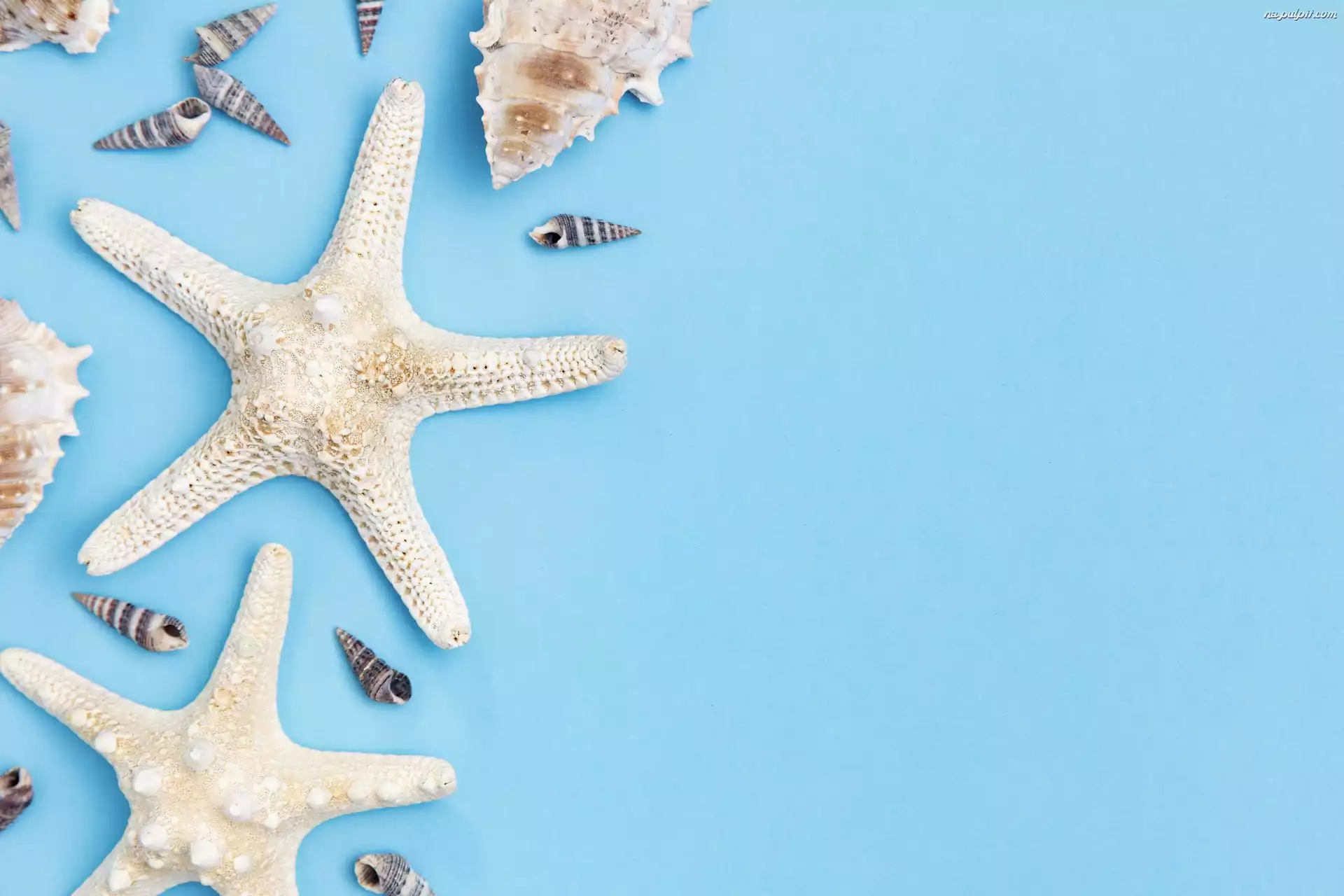 Tło, Muszelki, Rozgwiazdy, Niebieskie