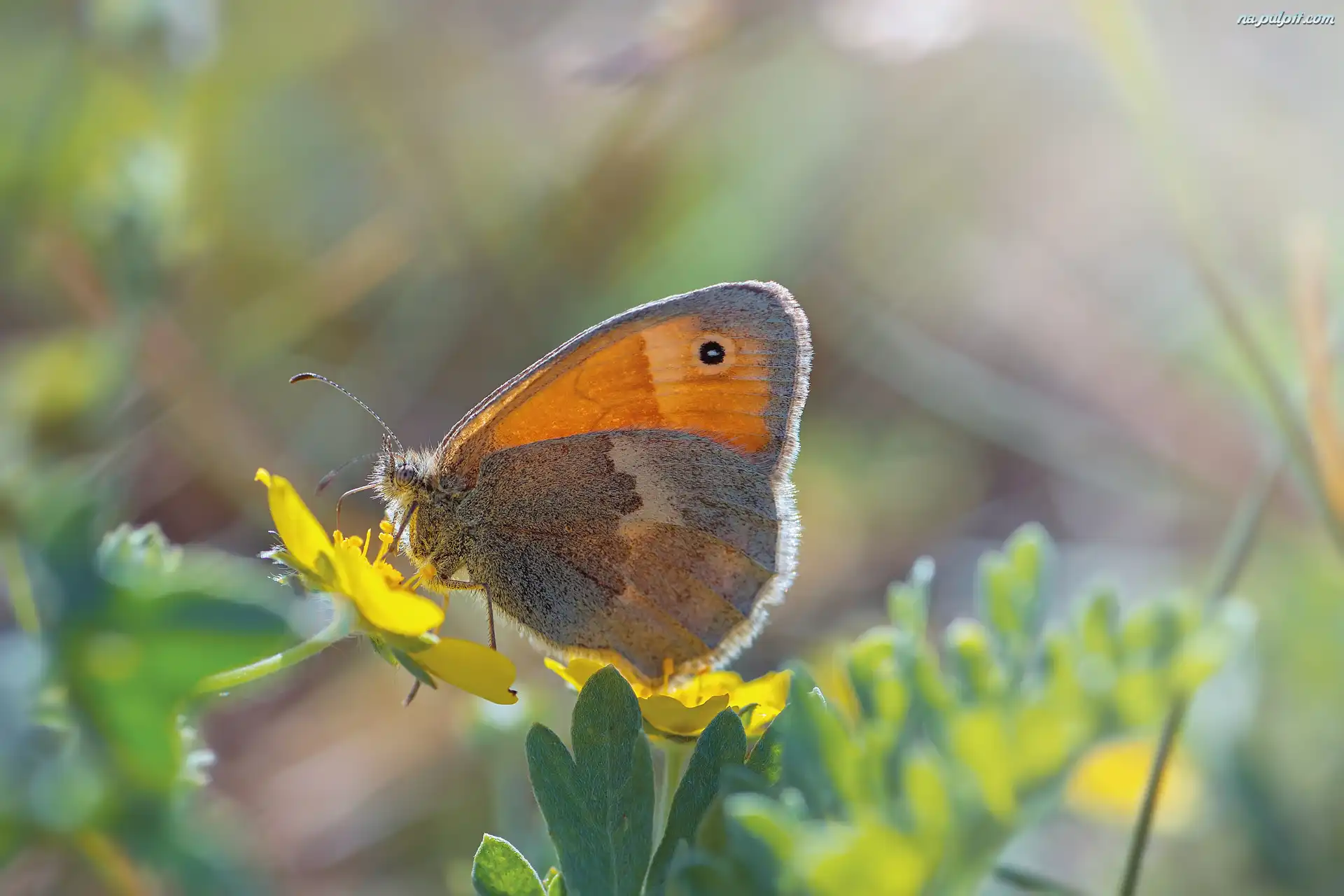 Rozmyte tło, Żółte, Strzępotek ruczajnik, Motyl, Kwiaty
